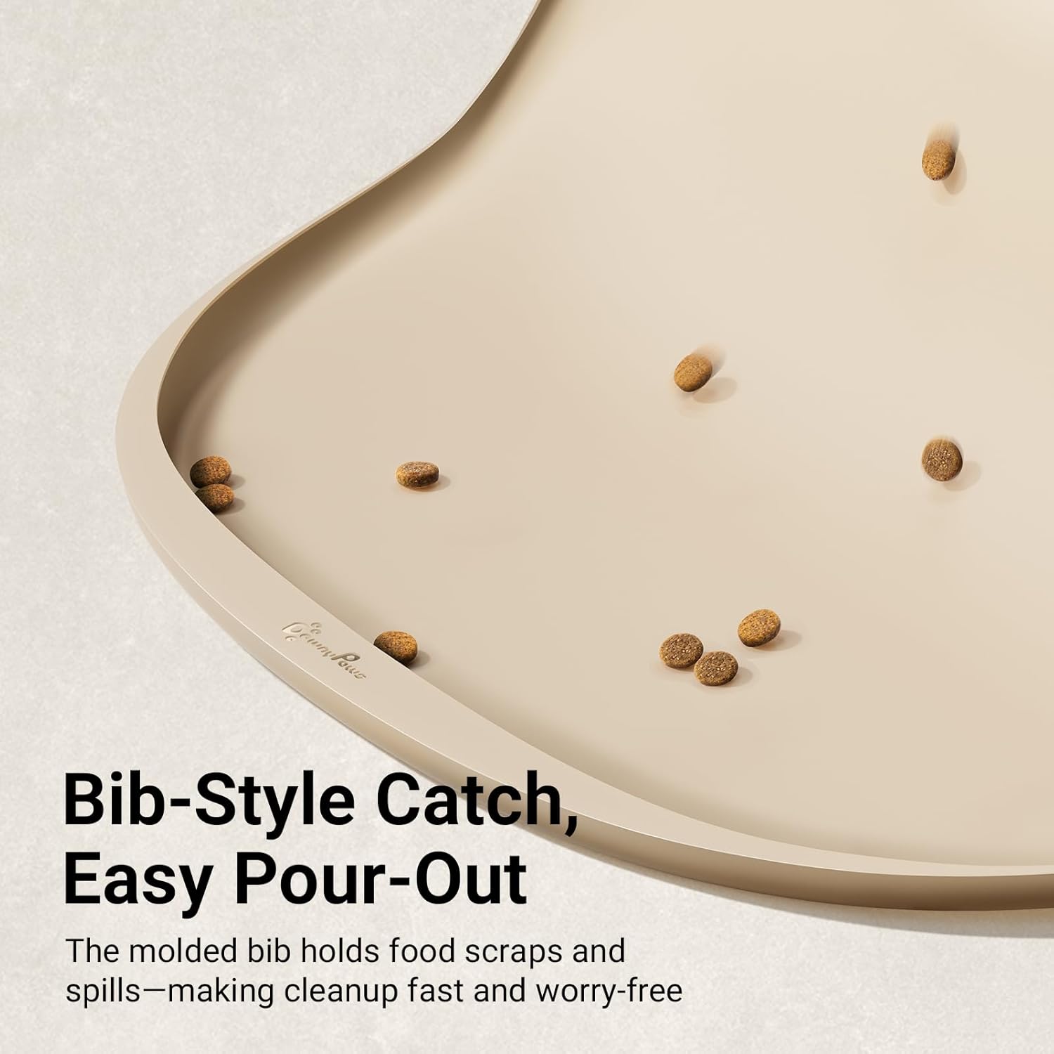DownyPaws Dog Food Mats for Floors Waterproof, BPA Free Silcone Dog Bowl Mat, Non-Slip Pet Feeding Mat with High Raised Edge, Cat Placemat for Messy Drinkers, 18"×12.5", Almond