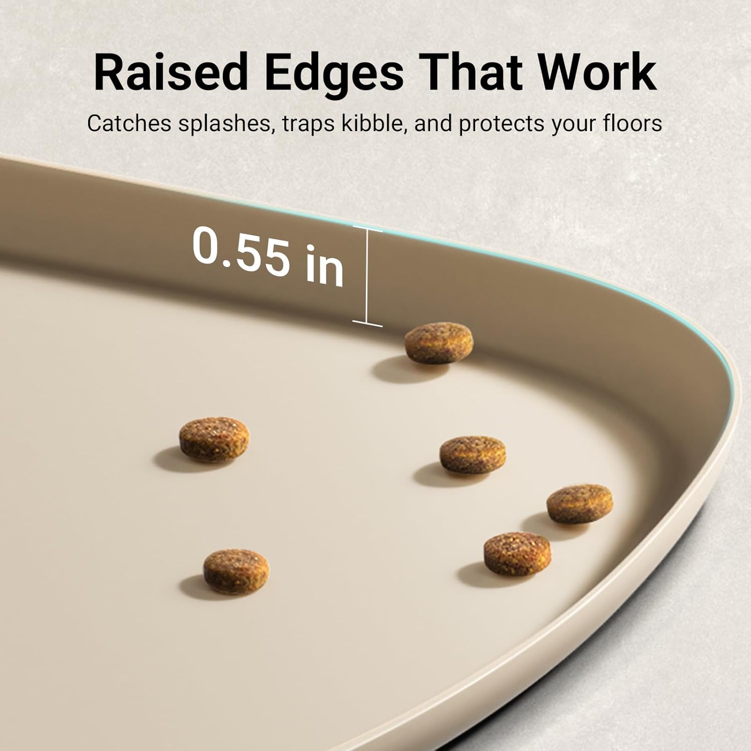 • Stop Messes, Start Happy Mealtimes: Designed with a 0.55 inch high rim around all sides, the pet food mat keeps spills, water splashes, and food crumbs securely contained. The dog water mat keeps floors dry and giving messy eaters freedom to enjoy food