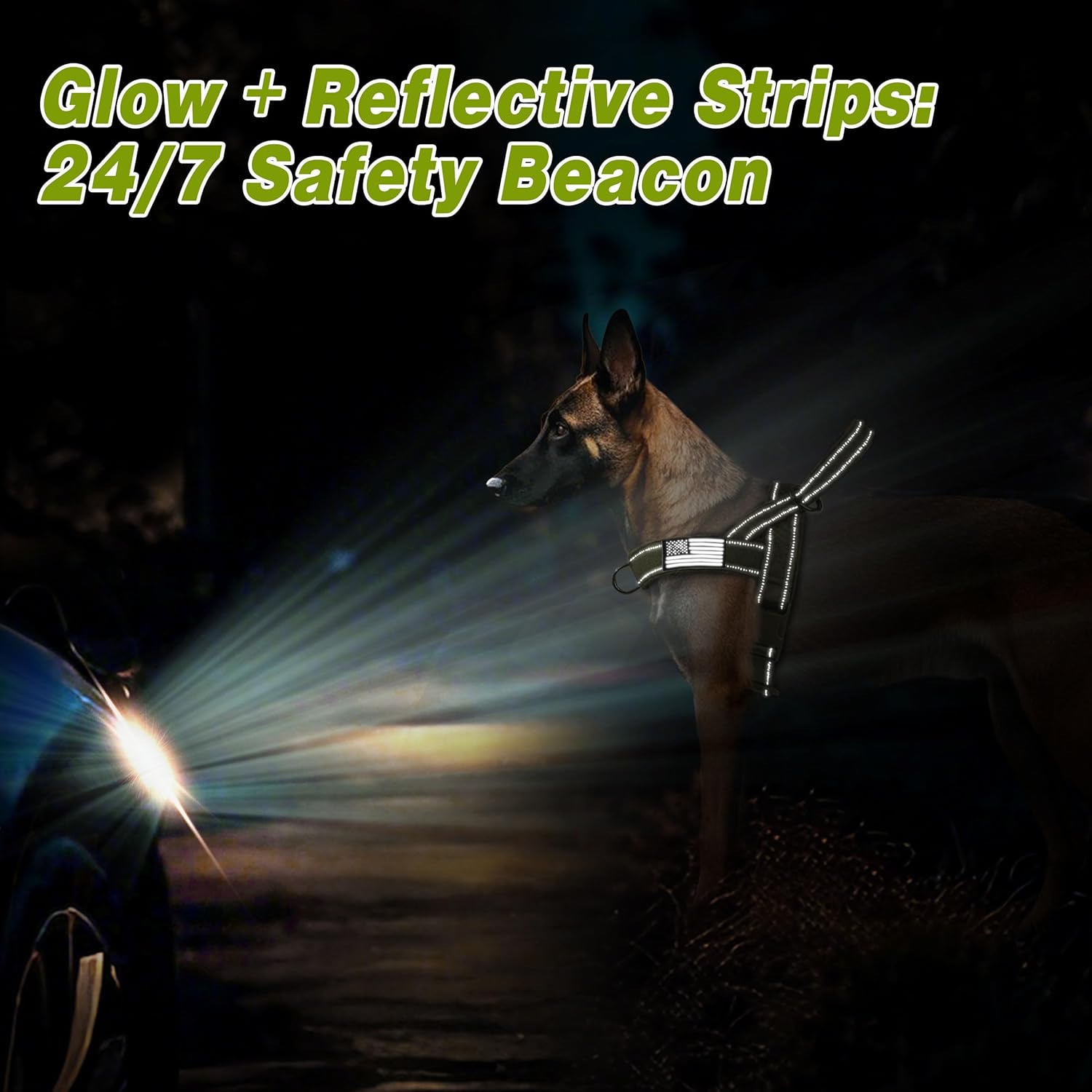 Forestpaw No Pull Dog Harness - Soft Flannel Padded Tactical Dog Vest Harness with Quick Release Buckle, Adjustable Reflective Pet Harness for Large Dogs Walking Training,Green XL