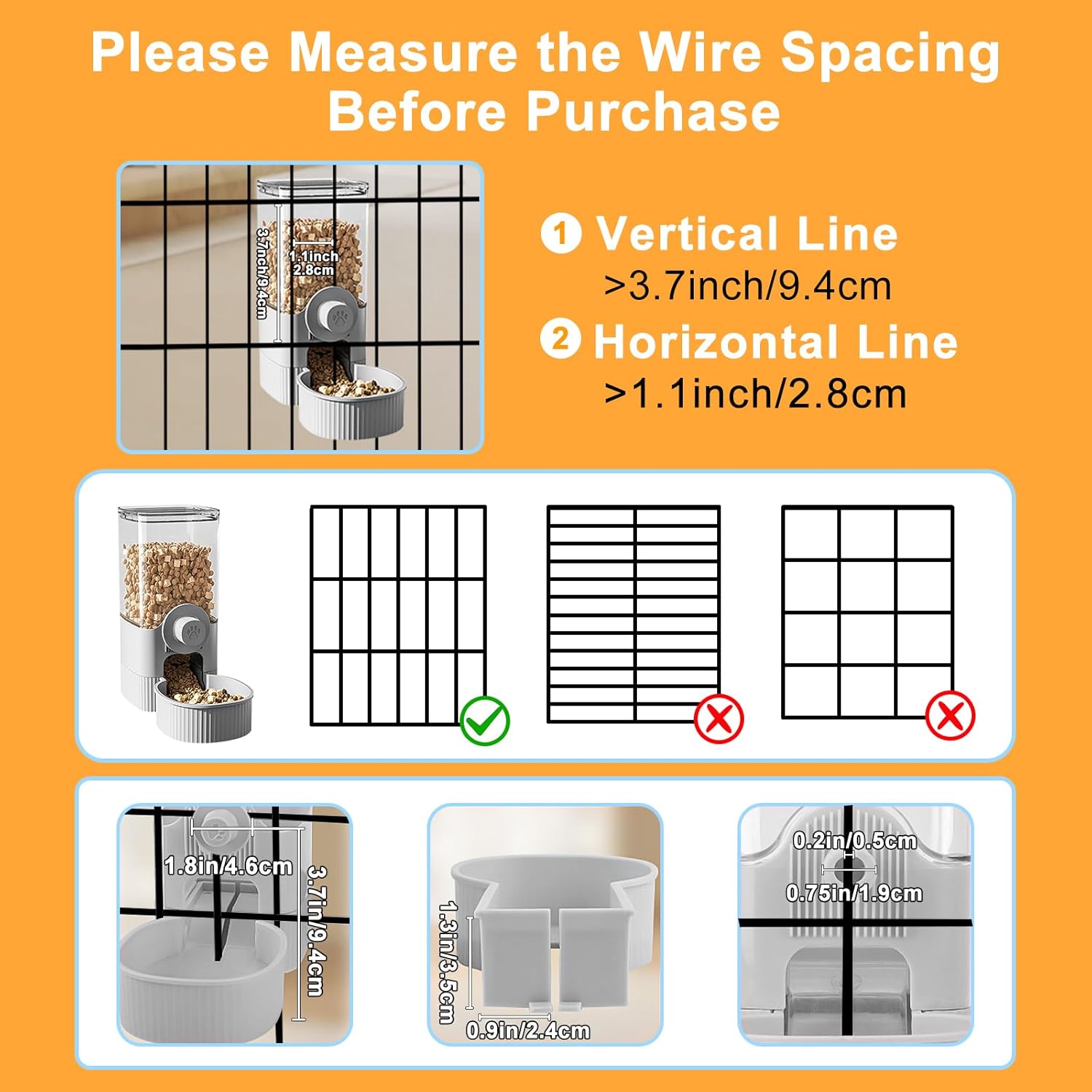 • Cage Pet Dispenser: It suits for small animals, as Cats, Dogs, Rabbit, Ferret, Chinchilla, Bird, Hedgehog, Guinea Pig and so on. Suggestions: the recommended spacing of cage wire mesh is 3-6cm (1.2-2.4inch), please measure your cage spacing before purchase.