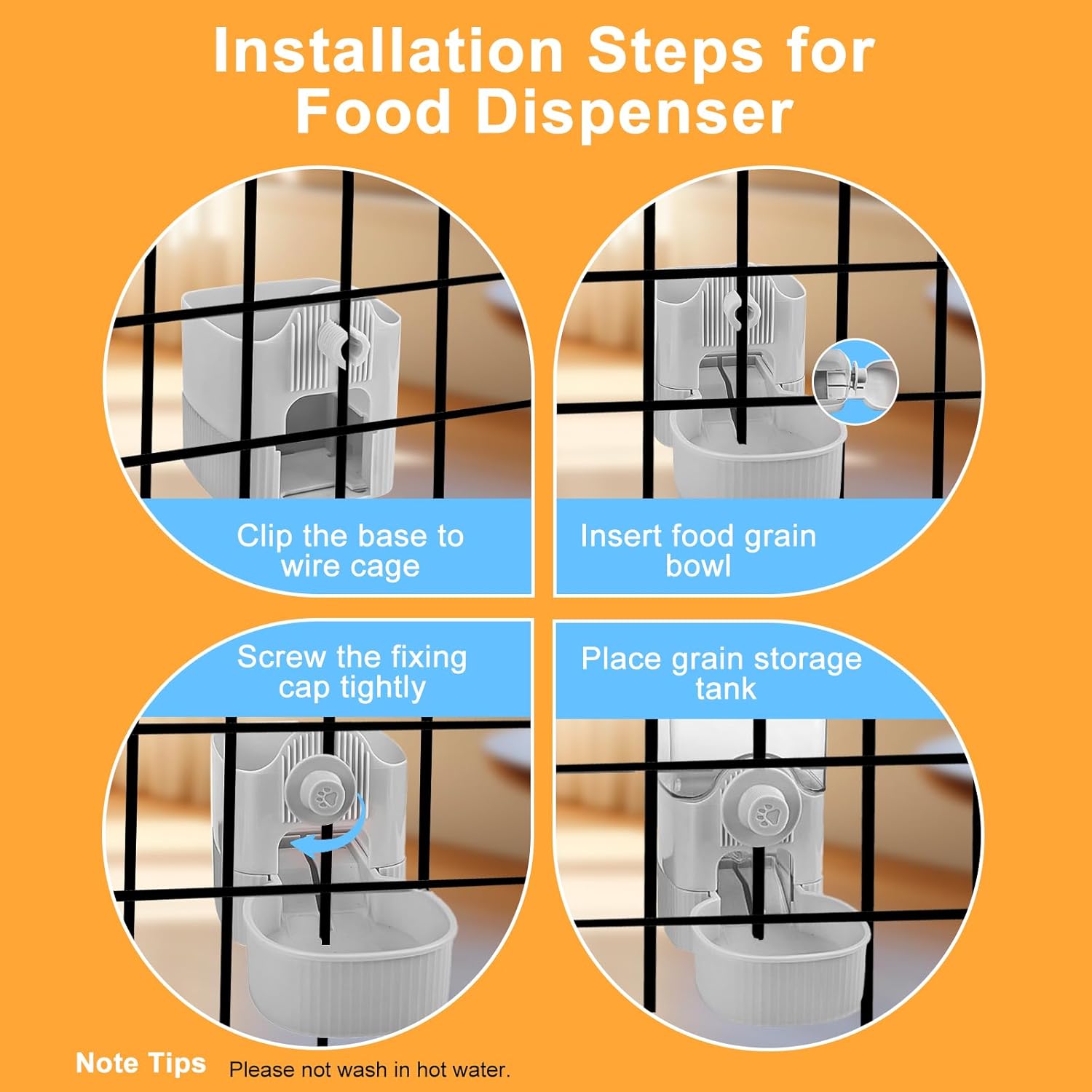 • Automatic Refilling Design: This cage hanging pet food feeder can provide plenty of food by natural gravity supply design. The gravity auto-refill feeder with a 75ยฐ sloping ramp and 5cm food outlet, pet grain can be smoothly replenished, reduce jam food.