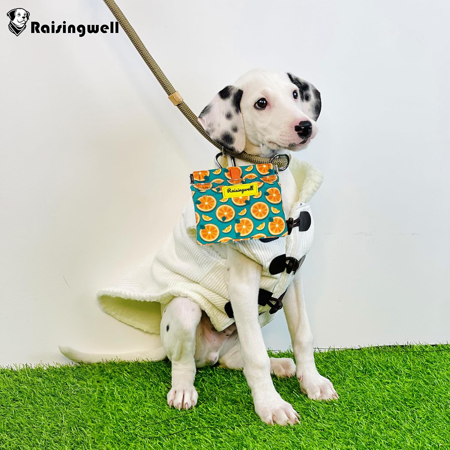 • Durable Material: Raisingwell's dog treat training pouch is crafted from durable, washable, non-toxic vegan fabric, made of pure cotton. In particular, the waterproof lining addresses the issue of difficult cleaning inside the training pouch.