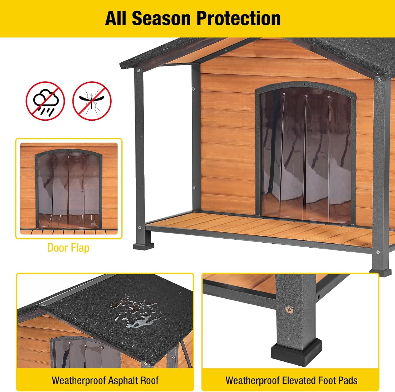 • Sturdy Wood And Metal Structure: Large dog house reinforced with a metal frame and thick solid wood panels for enhanced durability and long-term outdoor use
