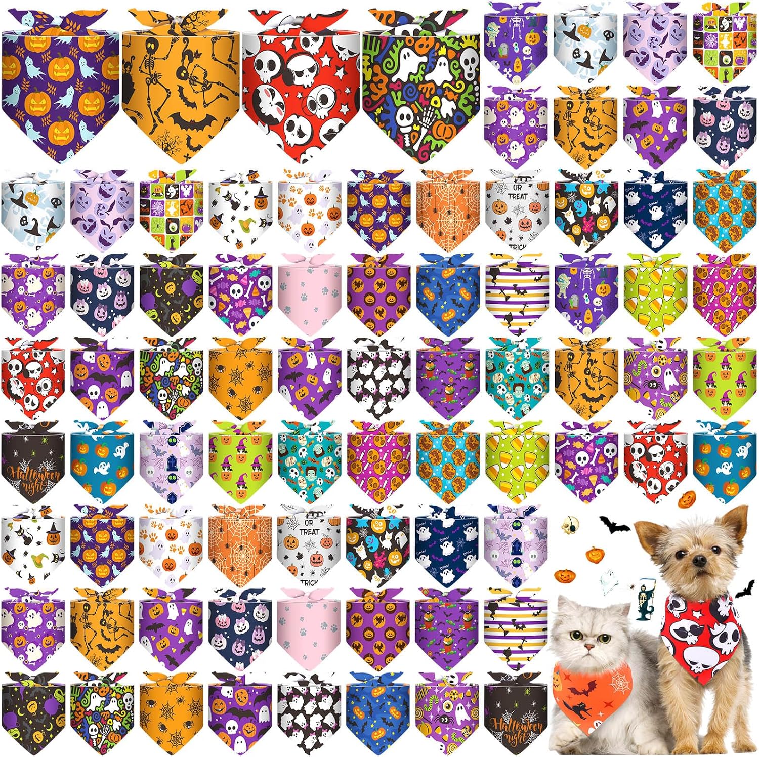 • Ample Quantity: with 72 pieces of Halloween theme dog bandanas in one package, you can have your dog looking stylish, the holiday pet headscarves come in different patterns, bright colors, sufficient quantities, diverse styles, can meet your pet's different style wearing needs and daily replacement