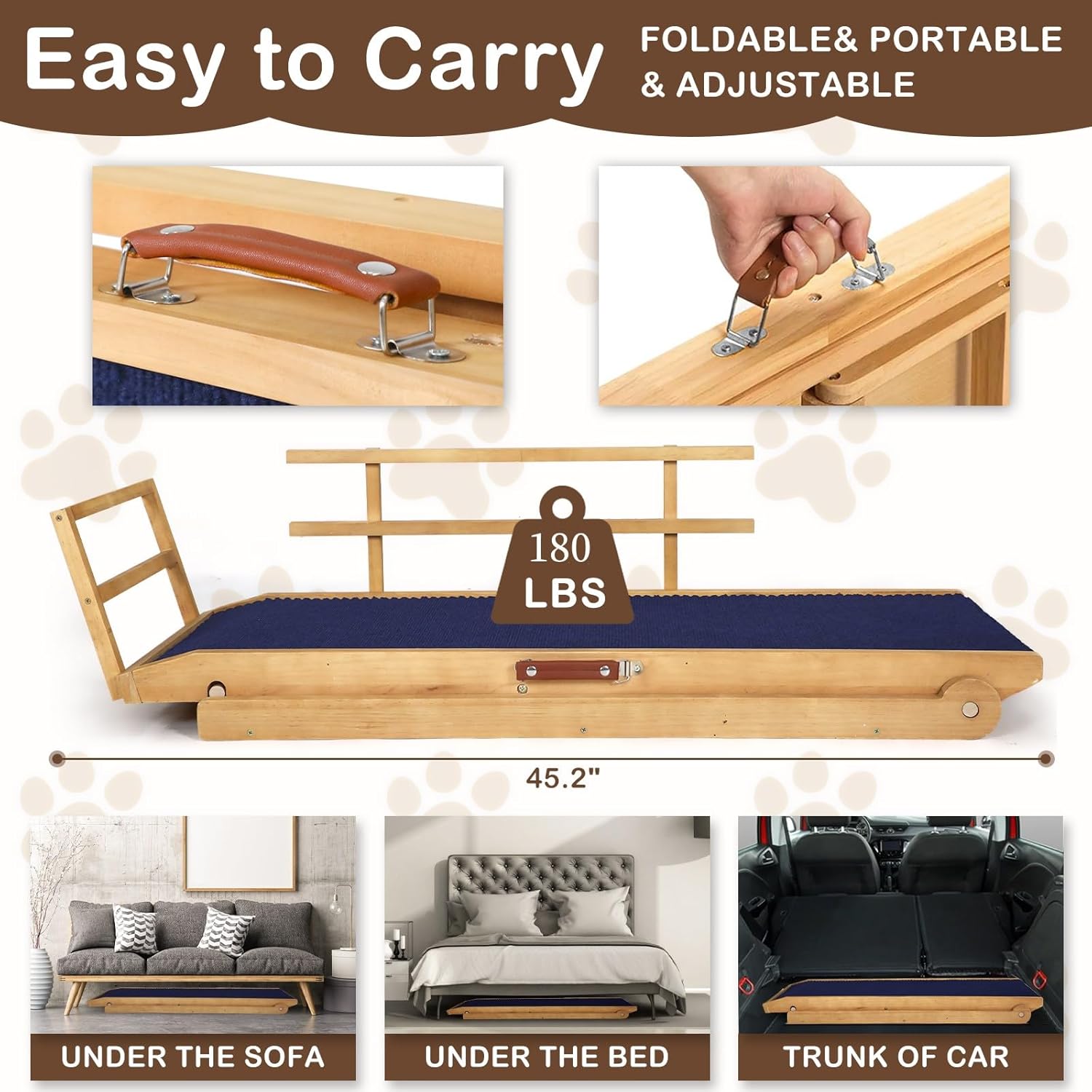 • Super Load-Bearing Capacity 180 Pounds - Solid wood support for small and medium-sized dogs (Corgis, Labrador, etc.), no noise and no deformation during use.This safety pet ramp can protect the joints of naughty children very well.