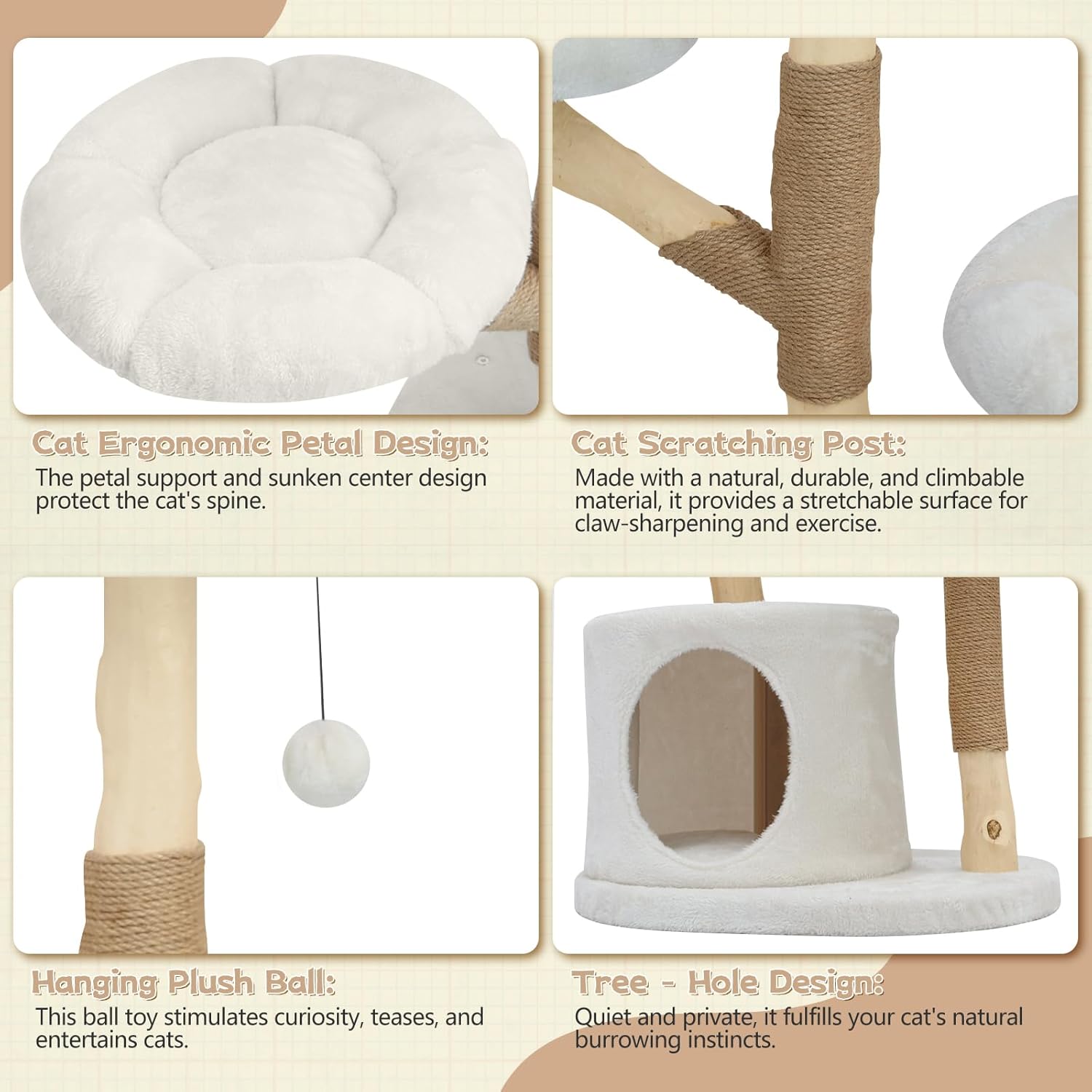 • Adorable Appearance & Versatile Use: A luxurious modern cat tree tower elevates your home decor. The flower-shaped platforms and elegant Y-shaped supporting posts make it a decorative addition to any room. Each platform is thoughtfully spaced and sized, allowing your cat to climb, jump, play, hide, relax, or sleep.