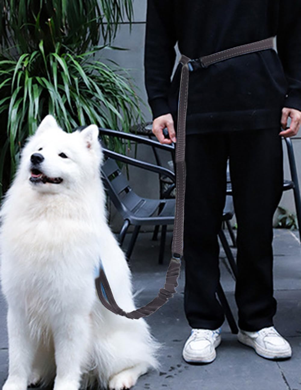 • Bungee Dog Leash: This heavy duty bungee dog leash is perfect for active dogs. Bungees design help to absorb shock from dogs, reduce back strain and the risk of getting hurt. Our waist leash is 57 inch and extends up to 90 inch, your dog can comfortably run in front of you. And the dog leashes for large dogs heavy duty with short handle, you can use it pull the dog back to safety fastly in case of emergency