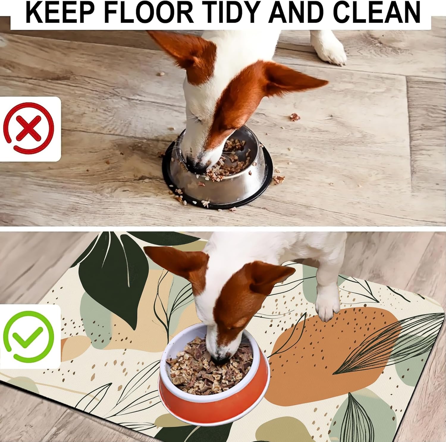 Abstract Boho Leaves Dog Food Mat-Absorbent Pet Feeding Mat for Food and Water Bowl, Quick Dry Dog Placemat with Rubber Backing-No Stains Pet Supplies for Messy Drinkers 12"x20"