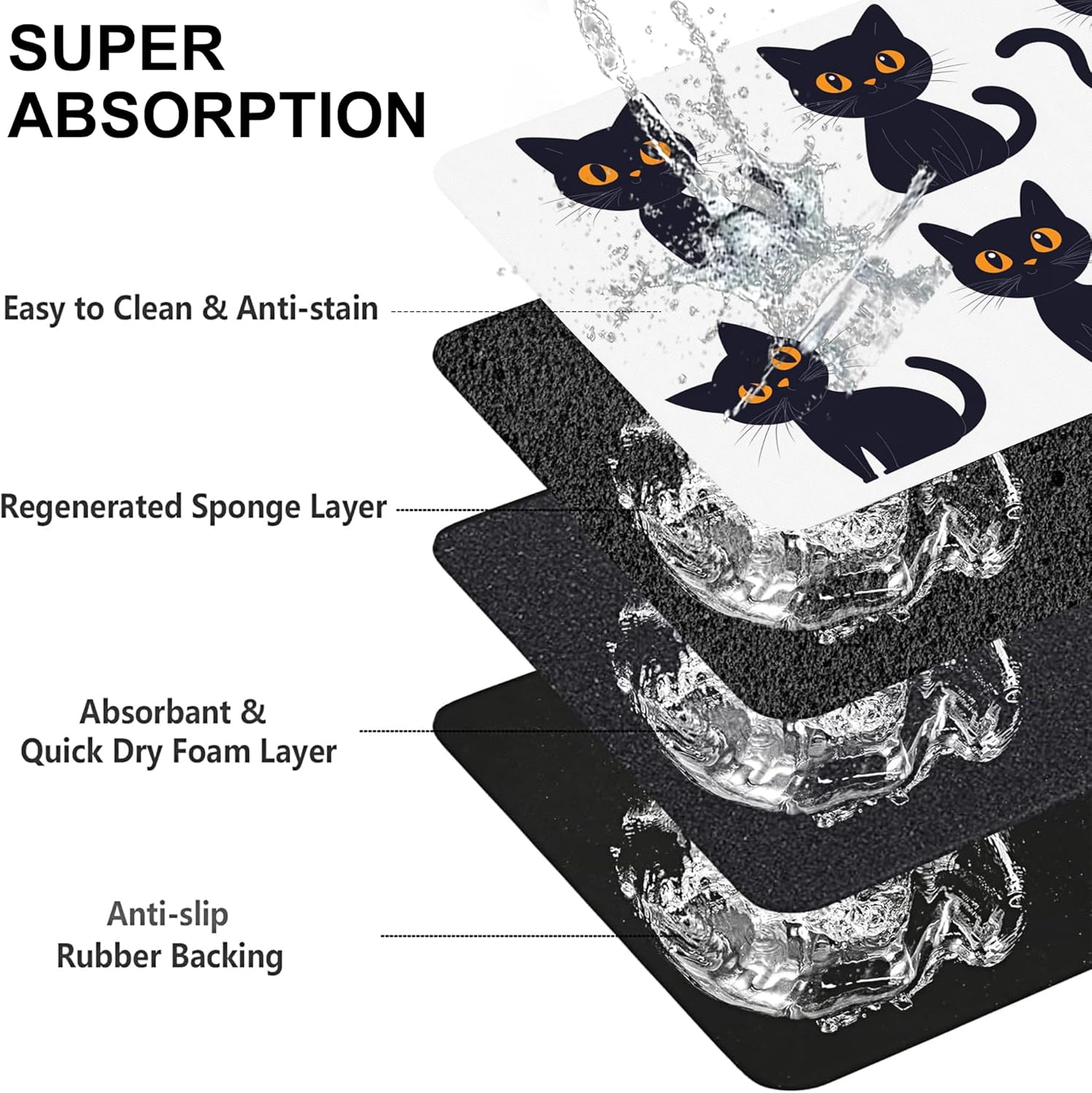Cute Black Cats Dog Food Mat-Absorbent Pet Feeding Mat for Food and Water Bowl, Quick Dry Dog Placemat with Rubber Backing-No Stains Pet Supplies for Messy Drinkers 16"x24"