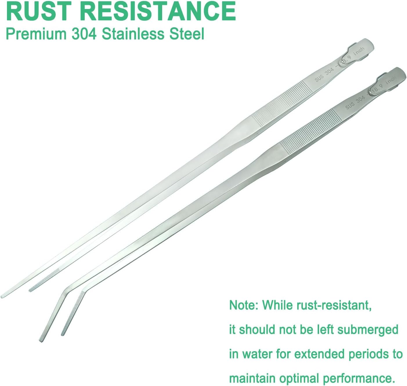 - √【PREMIUM 304 STAINLESS STEEL CONSTRUCTION】Crafted from high-quality 304 stainless steel, our aquascape tool boasts exceptional rust resistance, ensuring long-lasting durability even in humid aquarium or terrarium environments. Its corrosion-proof property makes it a reliable tool for both freshwater and saltwater tank maintenance, as well as damp reptile habitats. Note: While rust-resistant, it should not be left submerged in water for extended periods to maintain optimal performance.
