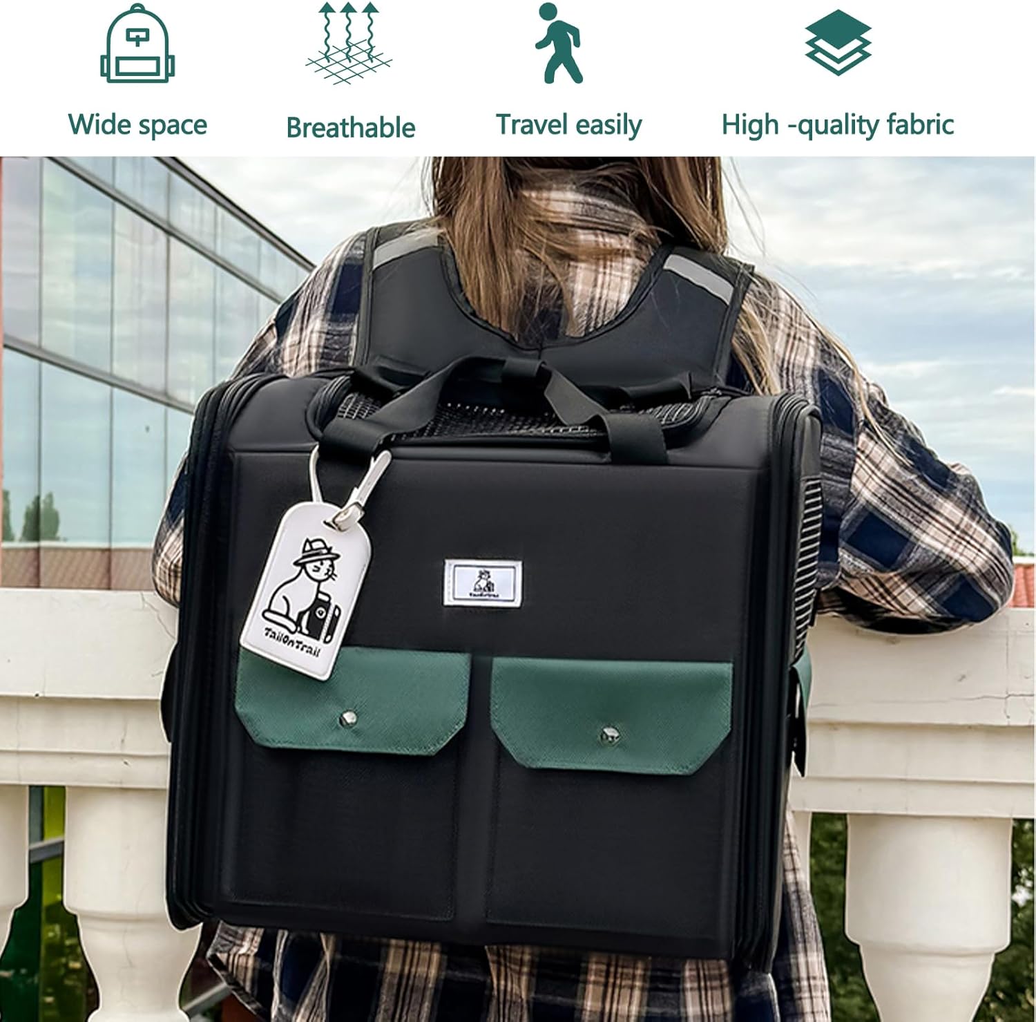 • Spacious and comfortable pet backpack: Our pet backpack measures 42*26*38cm (L x W x H), designed to provide you and your pet with maximum convenience and comfort when hiking, camping and traveling, or taking your pet, cat to the vet or walking the dog. It can easily accommodate large cats, small and medium dogs and other pets of different sizes, with a maximum weight limit of 7.5kg.