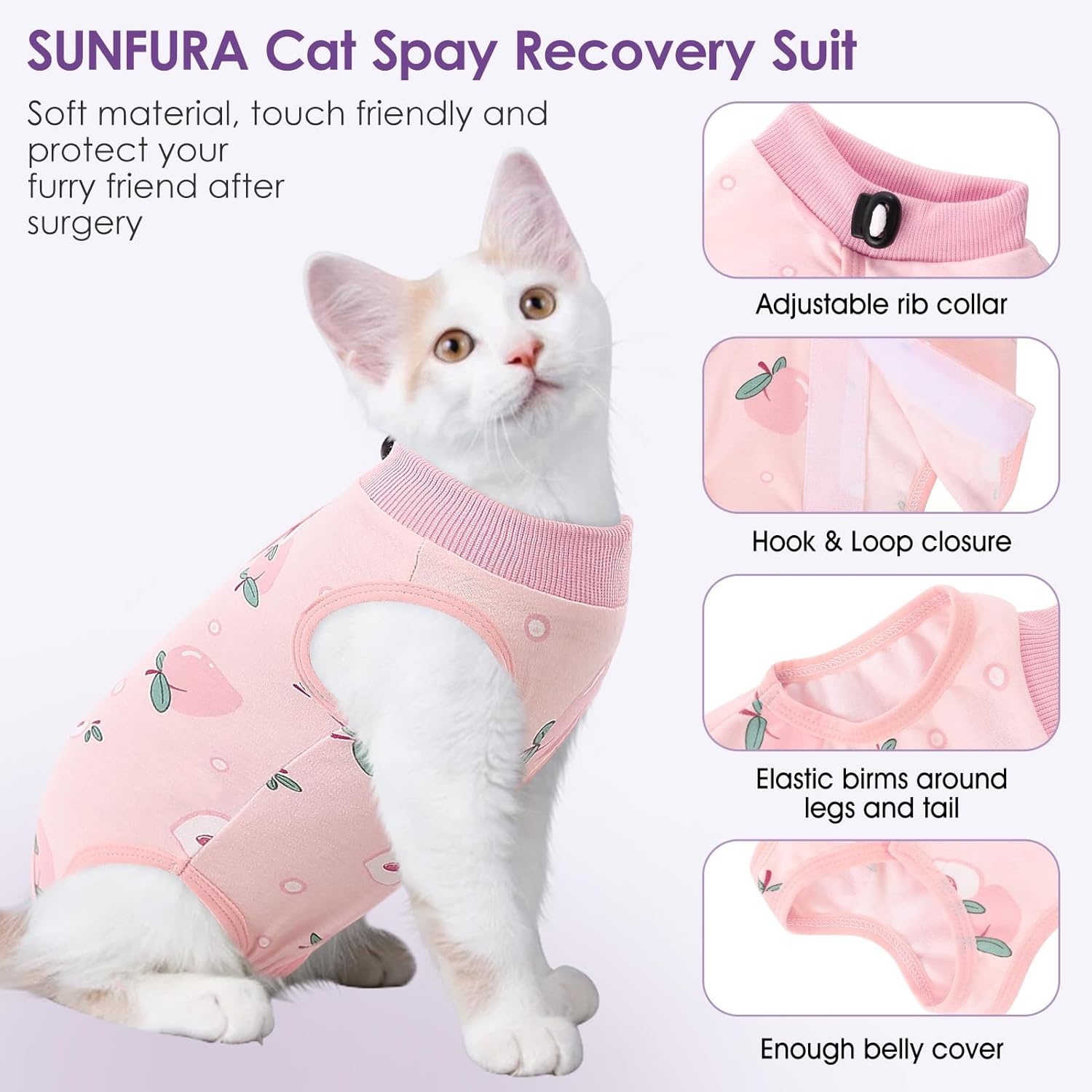 SUNFURA Cat Recovery Suit, Kitten Surgical Full Bodysuit for Abdominal Wound Protector Anti Licking After Surgery, Professional Bandages Cone E-Collar Alternative for Small Male & Female Pets