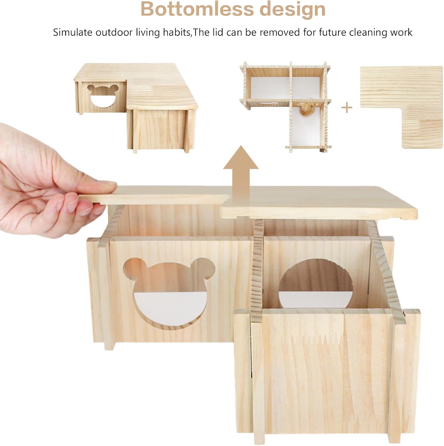 • Wooden Hamster Castle: The hamster hideaway features a double-layer structure design and 2 independent hamster hides. It also allows you to flexibly adjust the layout according to personal preferences or pet need, increasing the diversity and enrichment.This gerbil house is made of natural wood and has no peculiar smell. Every corner is polished smoothly to avoid scratching pets. It brings a chew able and safe hamster hut for syrian hamsters.