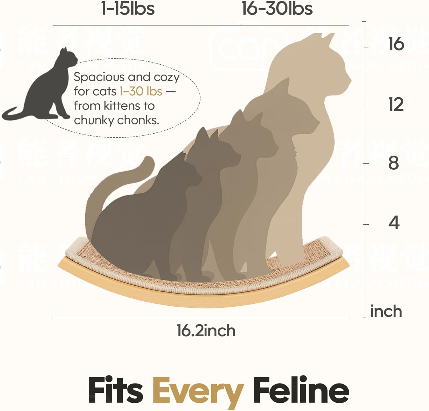 Wood Cat Wall Bed with Sisal Mat – Curved Cats Shelf for Scratching and Sleeping, Wall Mounted Cat Furniture for Large Cats