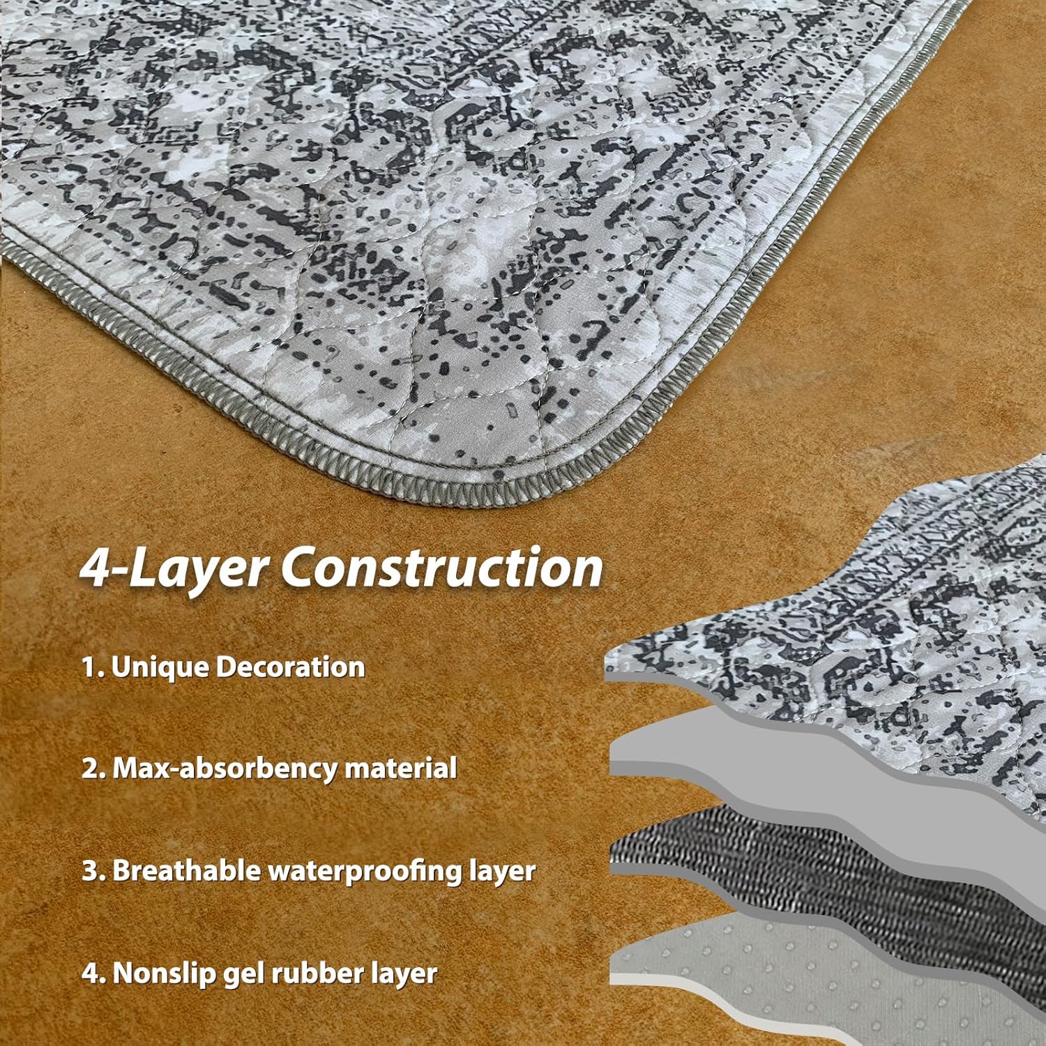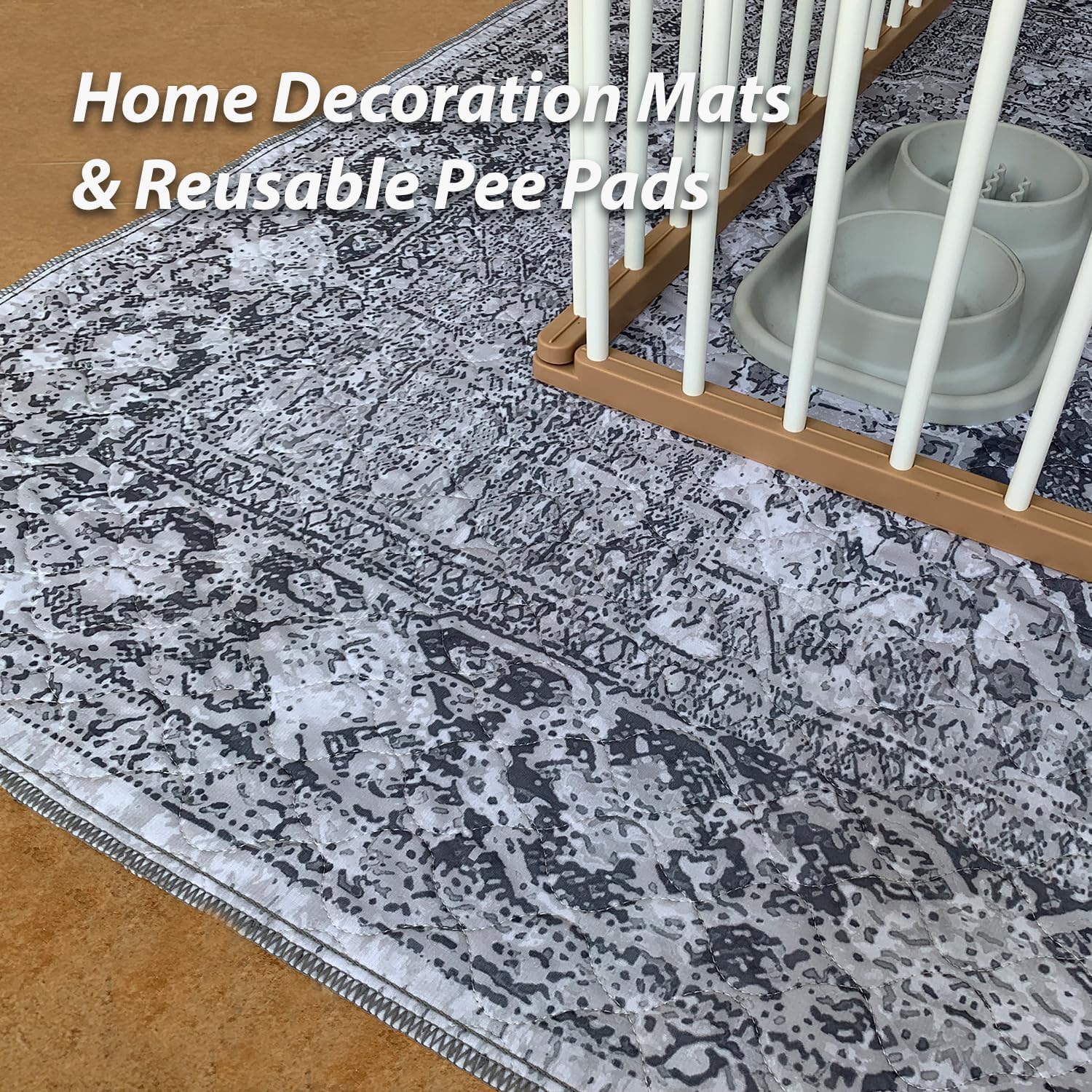 nunubaby Washable Pee Pads for Dogs, Stylish, Non-Slip and Leak-Proof Pee Pads. Reusable Potty Pads for Dogs for Crates and Floors.(Gray/Geo, 24" x48")