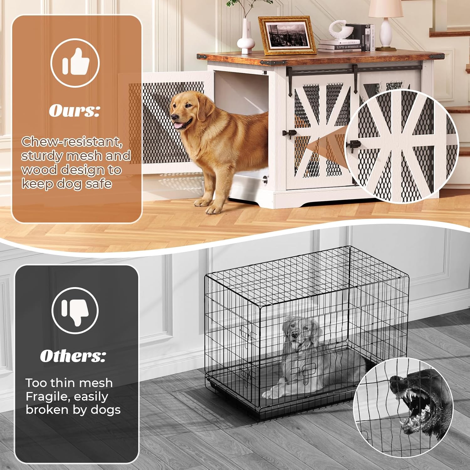• Measure Your Dogs Before Purchase: The interior size of the dog kennel furniture is 40.2"L x 26.9"W x 27"H and the weight capacity is up to 100 lbs. Add 3-4 inches to your dog's height and length to make sure your dog stays comfortable inside the dog cage