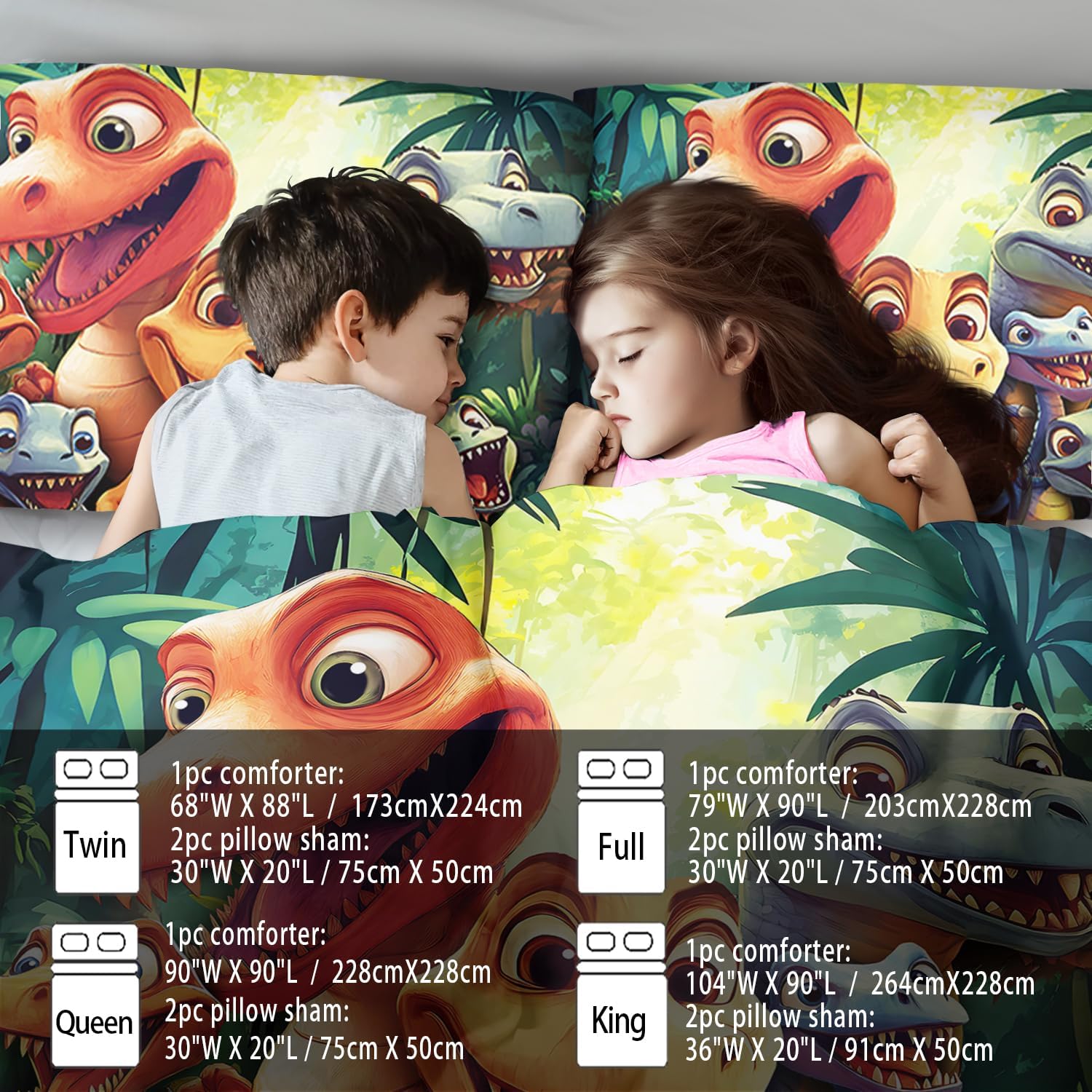 • Twin Size Dinosaur Comforter Set :This bedding set includes 1 comforter(67" x 85") and 2 pillowcases(20”x30”). In order to facilitate transportation, the quilt is made of vacuum compression technology. It will be slightly wrinkled when taken apart, but it will quickly regain its fluffiness if you gently beat it.