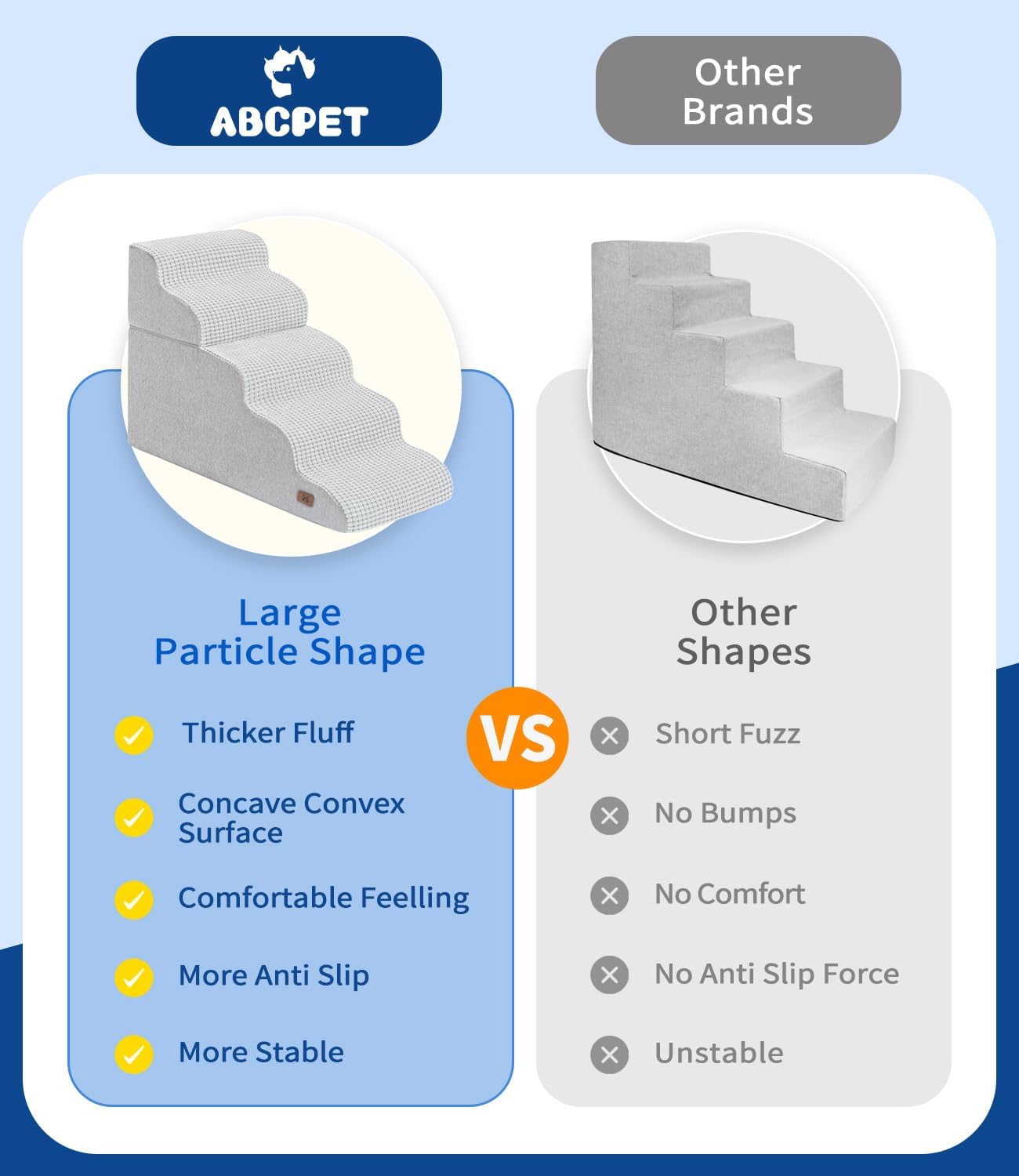 • Stronger Grip Anti-slip- The surface of this dog steps is made of larger fluffy particles. Stronger grip help your pet climbing to high bed or other surface, easily and safely. Combined with antislip bottom, this dog stair maintain stability during pet rushing to prevent pets from slipping