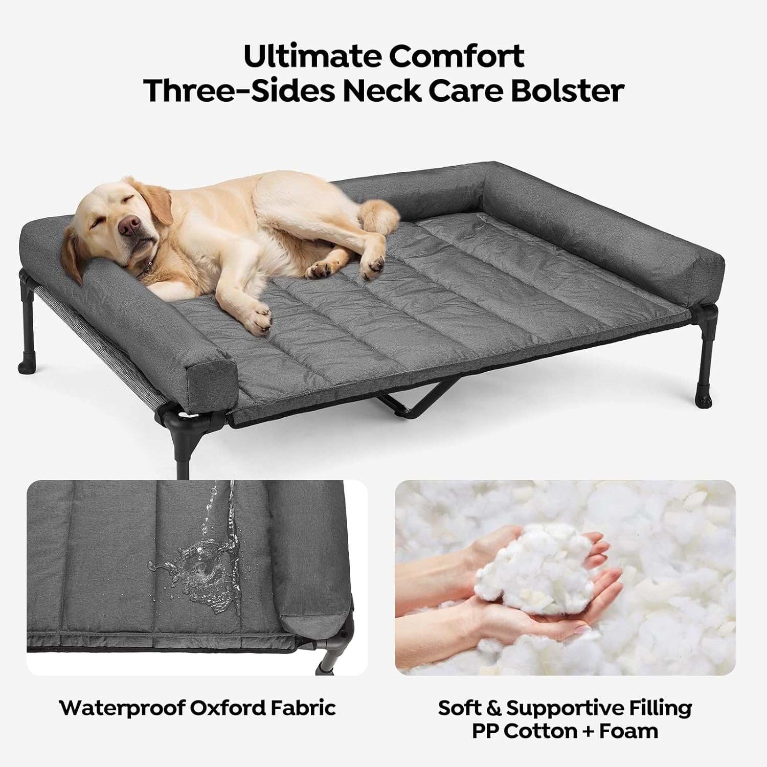 • XXLarge Dog Bed: The bed frame measures 53"x37.5"x9" (135x95x23 cm), fitting pets up to 55 inches long. Ideal for breeds like Golden Retriever, Great Danes, Wolfhound and more. Your furry friend will have plenty of room to stretch out and relax comfortably