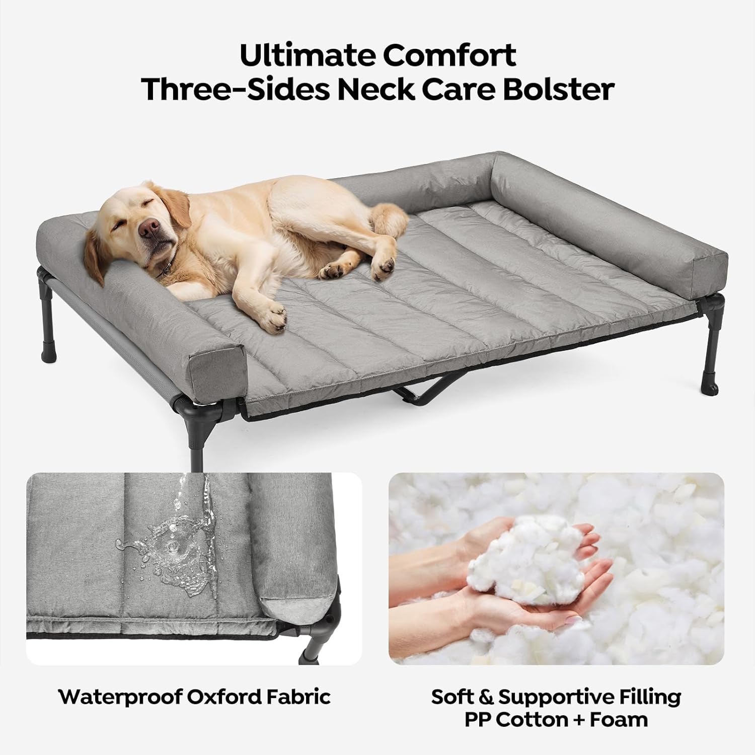 Veehoo Cooling Elevated Dog Bed Add Removable Waterproof Bolster Cushion Mat, Raised Pet Cot with Breathable Teslin Mesh, No-Slip Feet, Dog Couch Bed for Indoor Outdoor, 53 inches, Grey