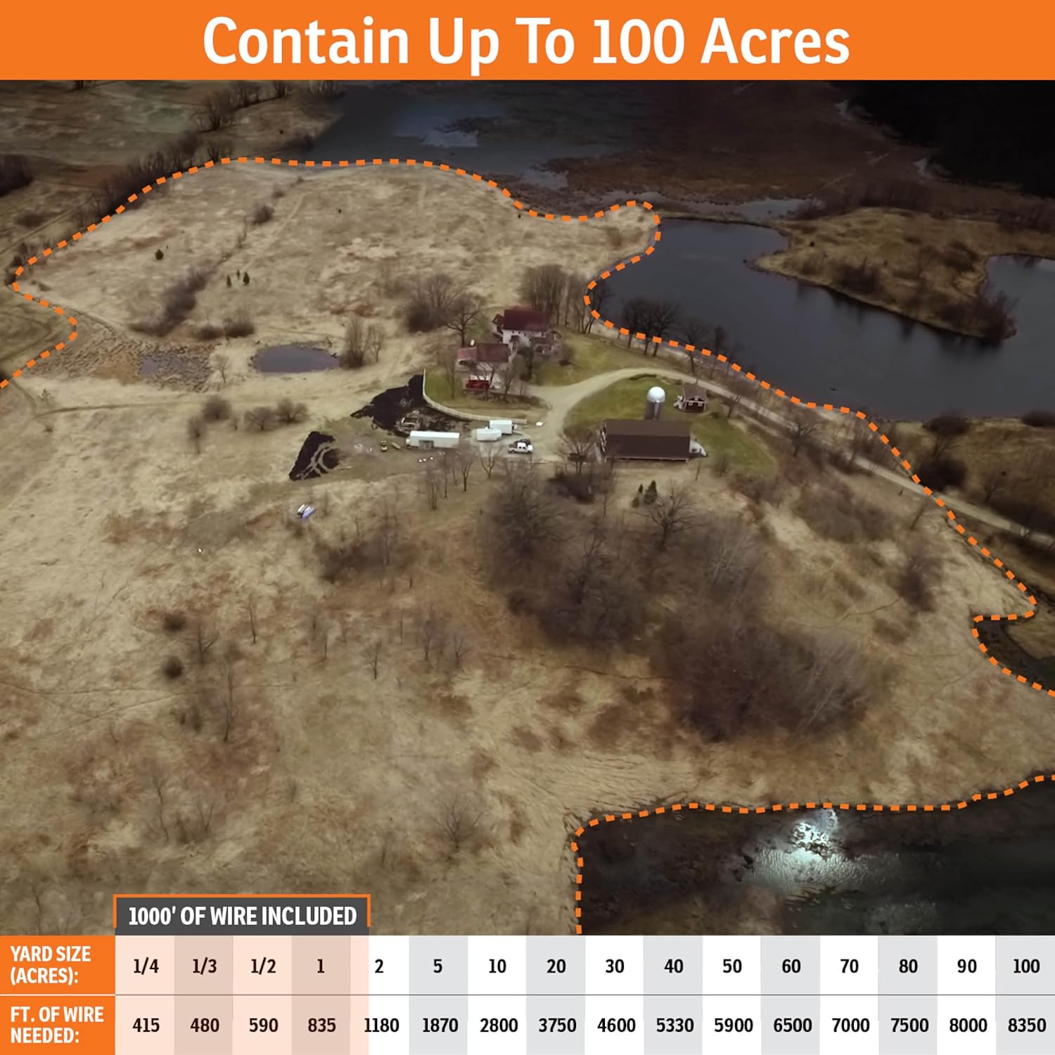 • EASY TO INSTALL: Containment kit includes everything needed to cover 1 1/3 acres of land for one dog; can be expanded to cover 100 acres with more wire and flags (sdf-wf)