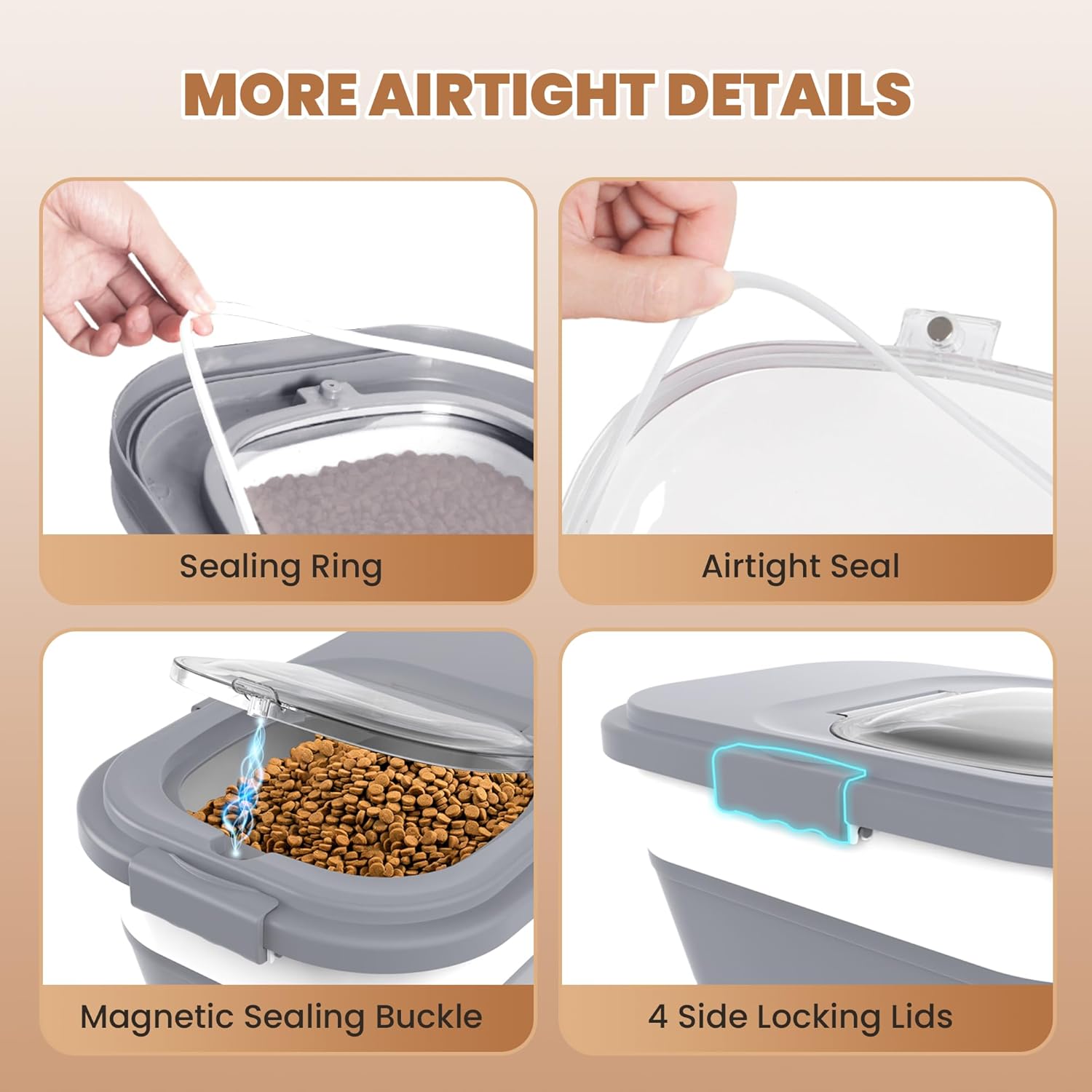• SUPERIOR SEALING FOR FRESHNESS:The pet food container with double airtight seals and 4 side locking lids offers excellent sealing ensures your pet's food stays fresh longer, free from moisture
