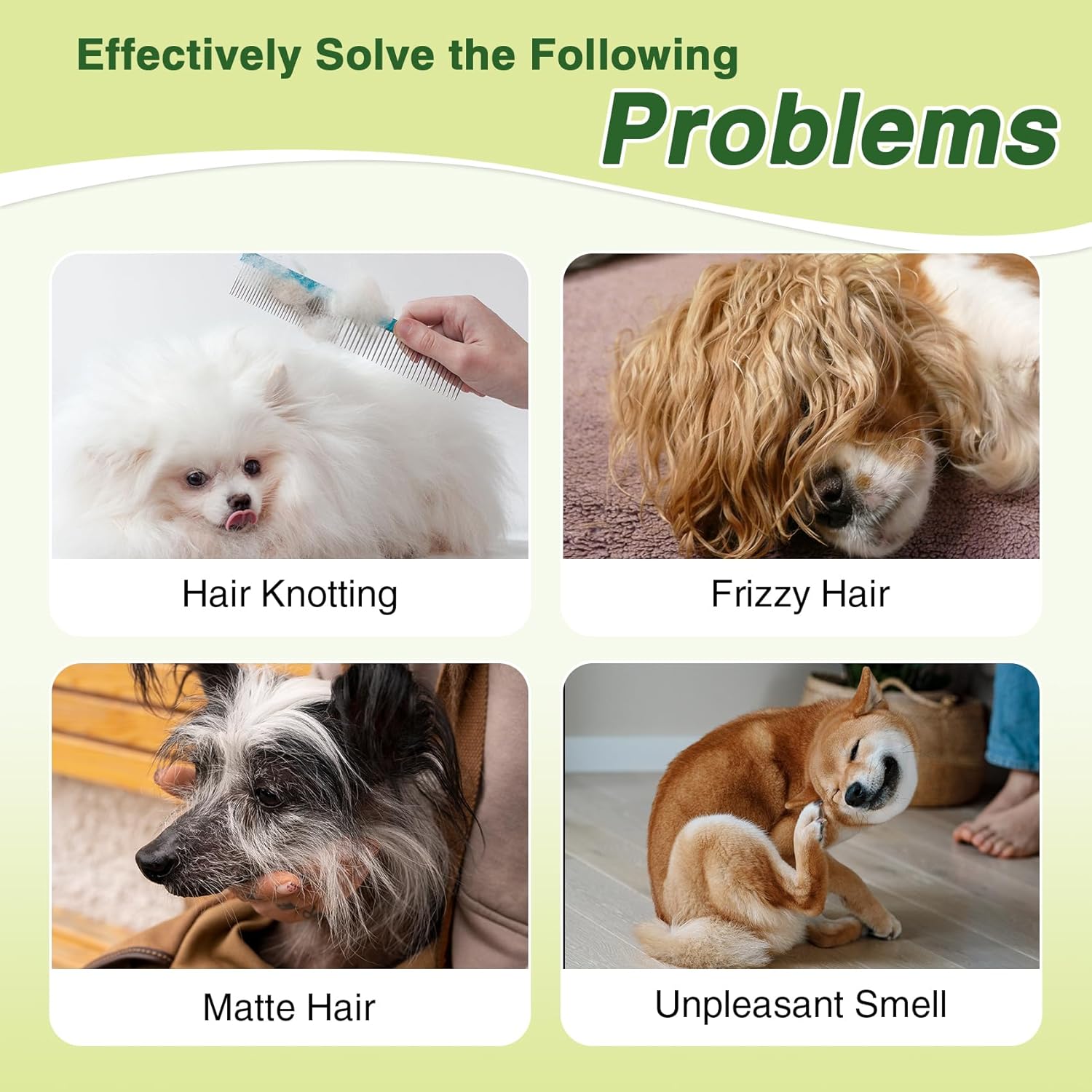 • Long-Lasting Fresh Scent – A dog moisturizer and conditioner that neutralizes odors, leaving pets smelling clean for days. Keeps fur soft and manageable, perfect for busy pet parents between washes or after grooming sessions