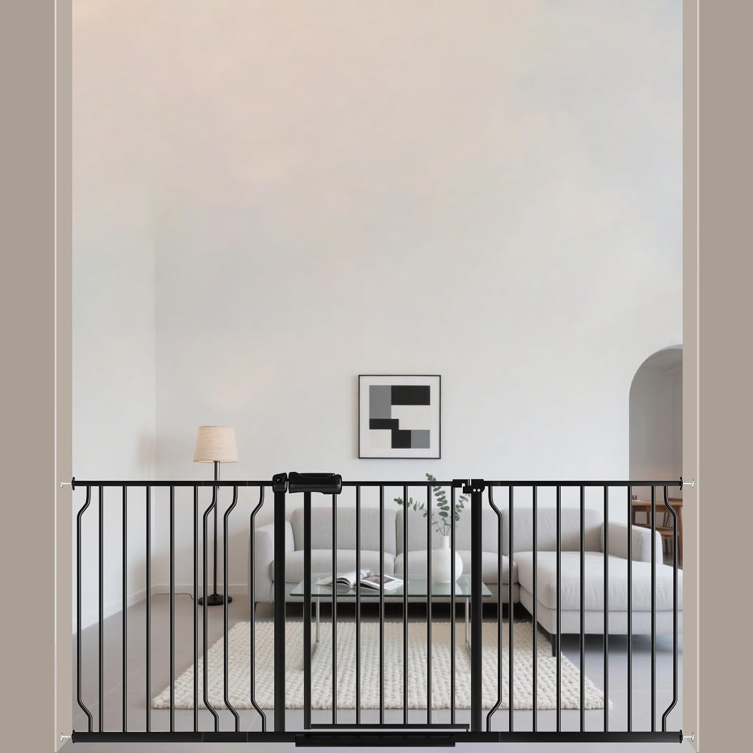 • 【Extensions&Multi Use】Additional baby gate extensions allow you to extend the width of your baby gate extender for other spaces in the home,suitable living room kitchen doorways and stairs .Fits wide openings, from 29 inch to 85.03 inch.The safety baby/pet gate can keep babies away from the dangerous kitchens or stairs.