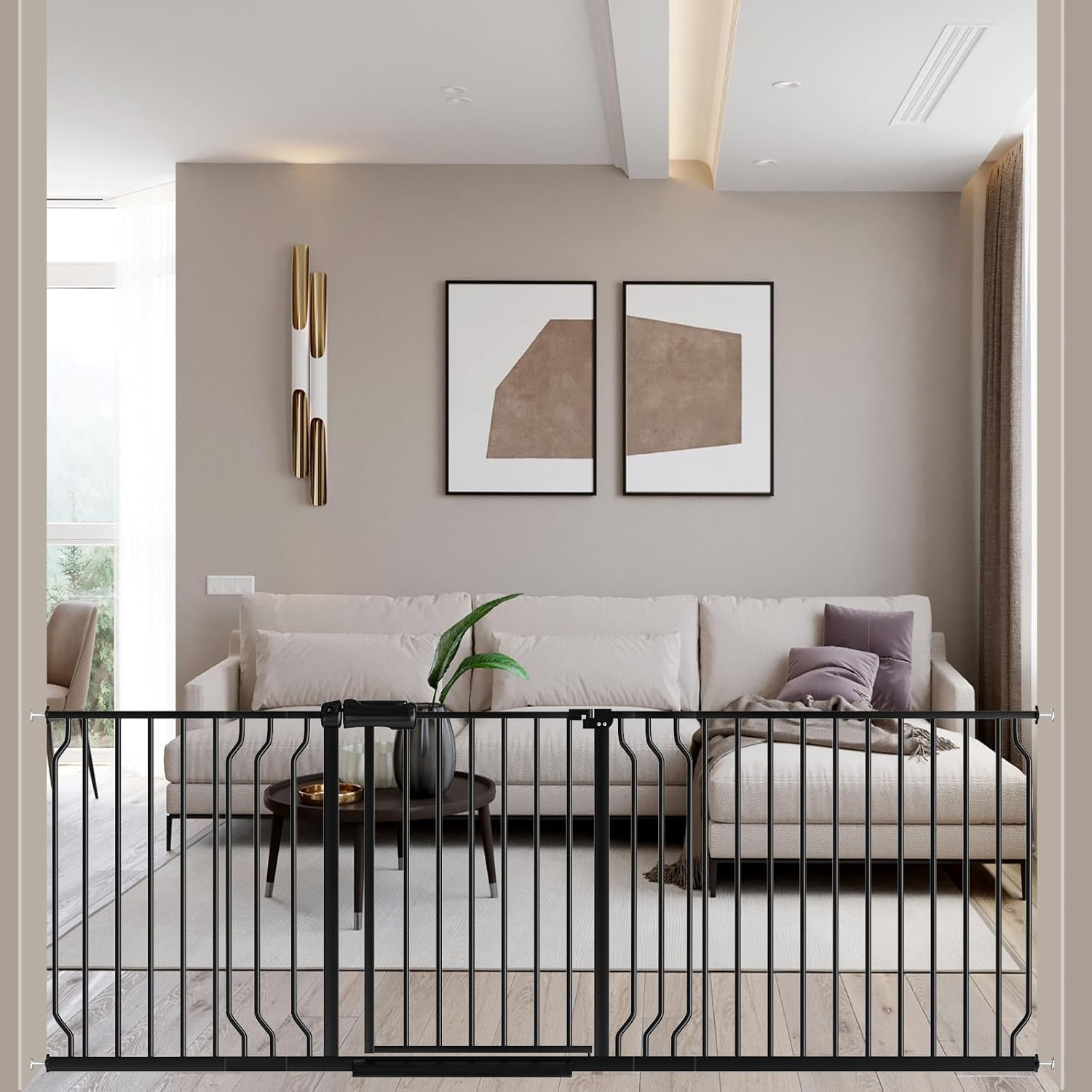 • 【Safe for Baby】Your curious crawlers will be "blocked" by the safety extra wide baby gate because we design the double-lock safety release which makes it difficult for toddlers to open the gate ,but adults can operate with one hand and pass quickly.