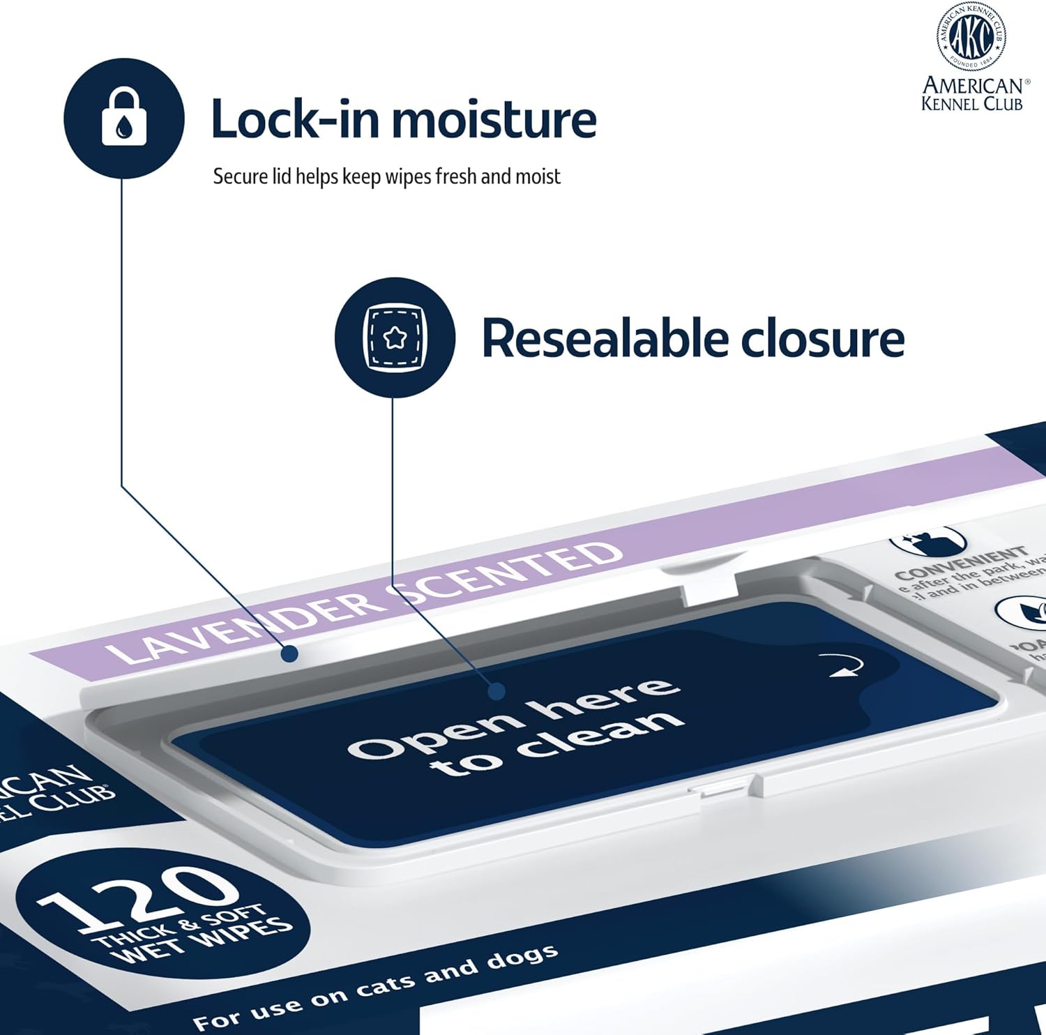 AKC Pet Wipes for Dogs & Cats – Hypoallergenic, Alcohol-Free Wipes for Paws, Face, Ears & Coat – Thick, Gentle Cleaning with Natural Aloe – Available in Lavender, Fresh & Oatmeal Scents