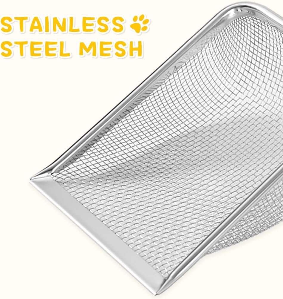 • 【5mm*5mm Small Mesh】The small mesh design allows you to easily separate cat feces fragments and cat litter with just a simple shake cat litter scoop, creating a clean cat excretion space without any effort.