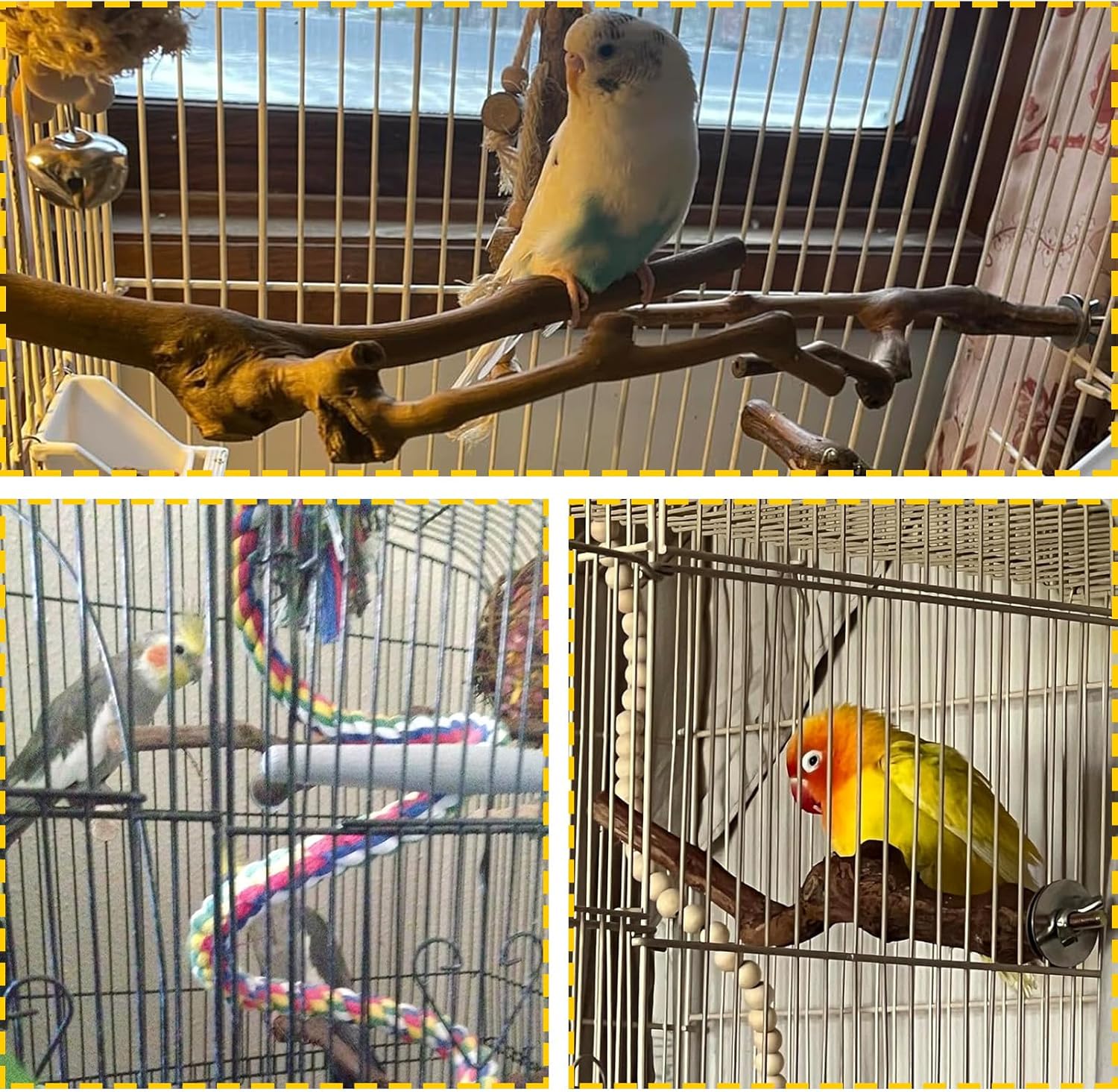 • Easy to Install:Every bird cage branch is equipped with a metal wing nut and built-in bolts.You can easily attach or removal to any cage with screws that lovebird cage perch can be securely fixed
