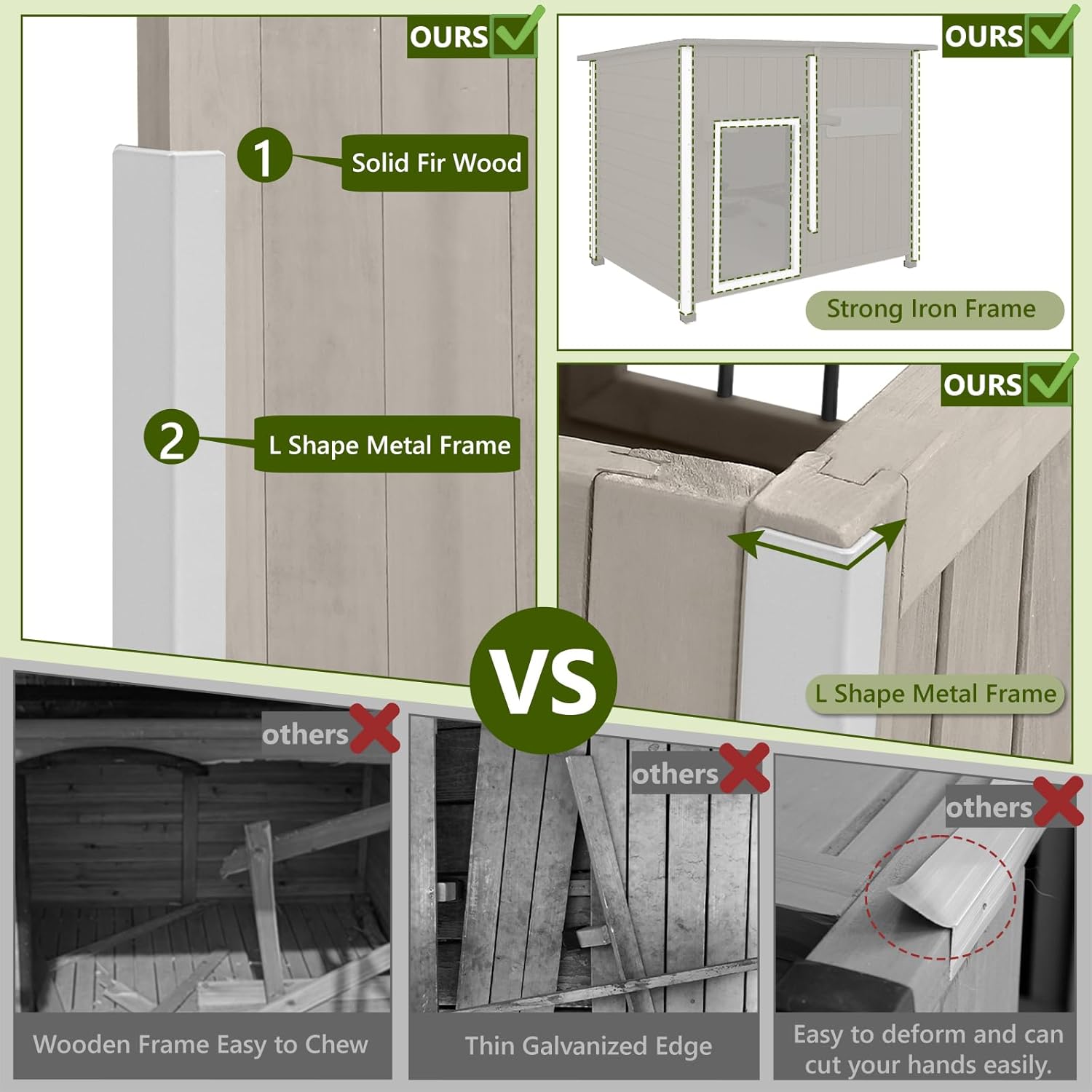 • 【DURABLE & CHEW-RESISTANT DESIGN】Crafted from solid fir wood and reinforced with a chew-resistant iron frame, this outdoor dog house resists cracking, warping, and biting. The sloped asphalt roof is weatherproof, preventing water and snow buildup to keep the interior dry. Built to last and protect your pet in any season.