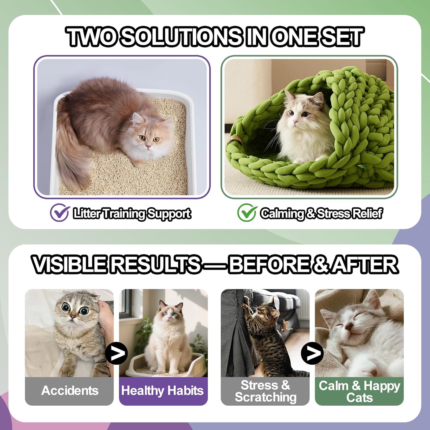• 【2-in-1 Comfort & Training Solution for Cats】 This Cat Comfort Duo includes two essential sprays: a Catnip Calming Spray to help relieve stress and a Litter Box Attractant to guide proper bathroom habits. Designed for multi-cat homes, new kittens, or rescue pets adjusting to new environments.