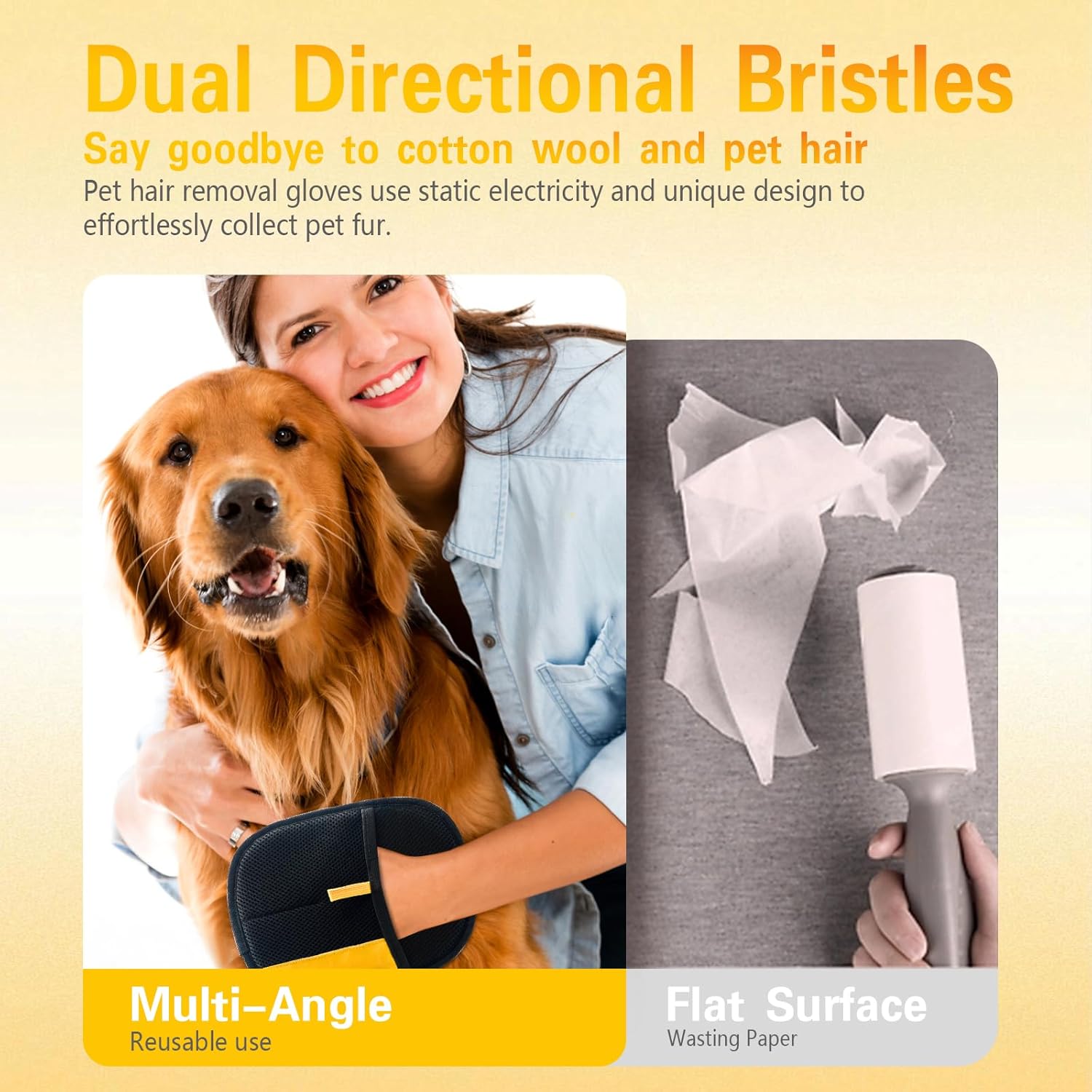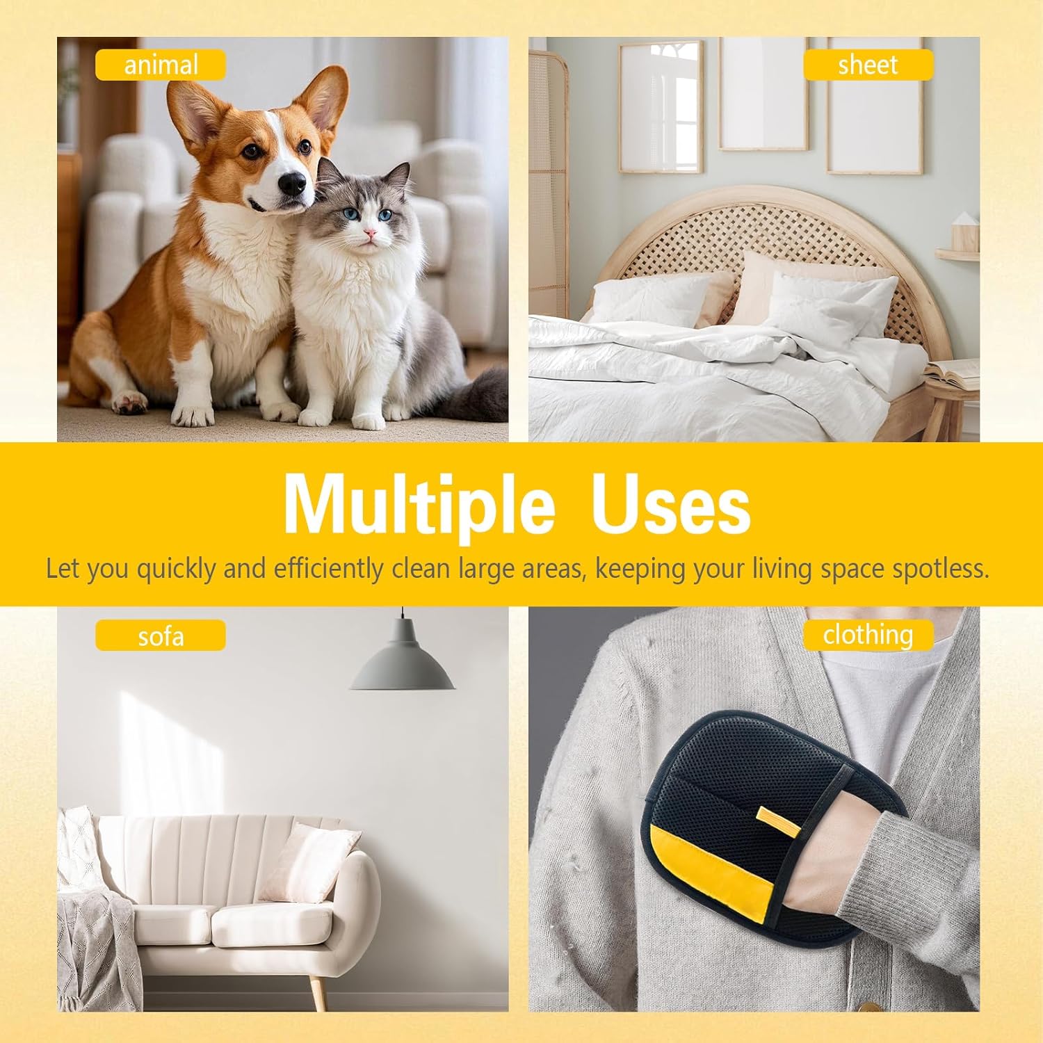 • 【Versatile Cleaning Champion - Pet Hair Remover Gloves for Every Surface】 The ultimate multi-purpose pet hair remover! This pet hair removal gloves works wonders directly on your cats and dogs, and tackles embedded hair on clothing, upholstery (sofas, car seats), carpets, bedding (sheets, quilts), and more. One electrostatic pet hair removal gloves conquers fur everywhere.