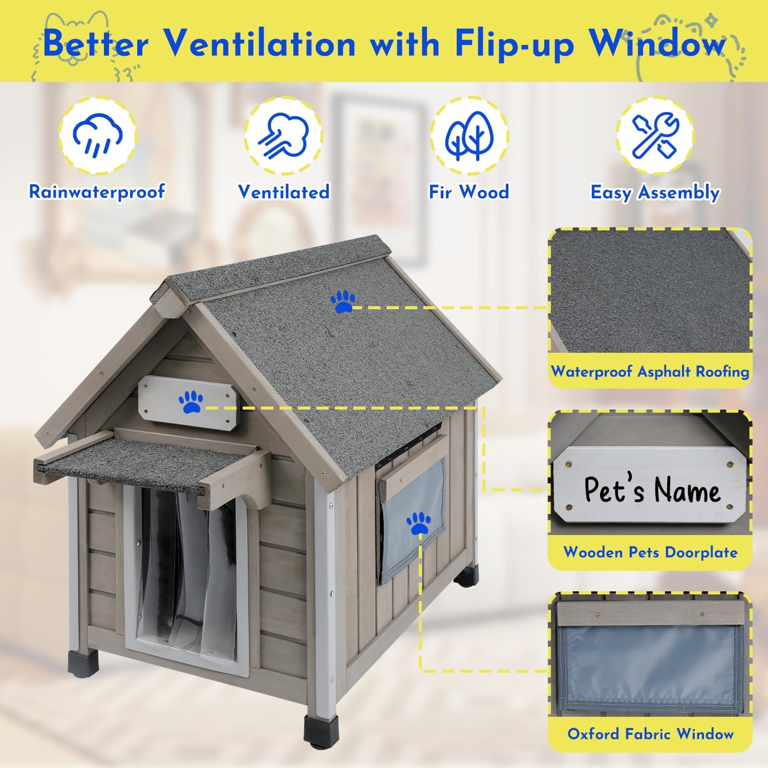 • 【All-Season Comfort】 Our upgraded flip-up window is made from breathable oxford cloth with an easy-to-use hook-and-loop closure. Roll it up for ventilation during hot summer days or close it to keep out cold wind and rain. This weatherproof and insulated outdoor dog house offers reliable year-round protection, ensuring your pup stays cozy and safe in all seasons.