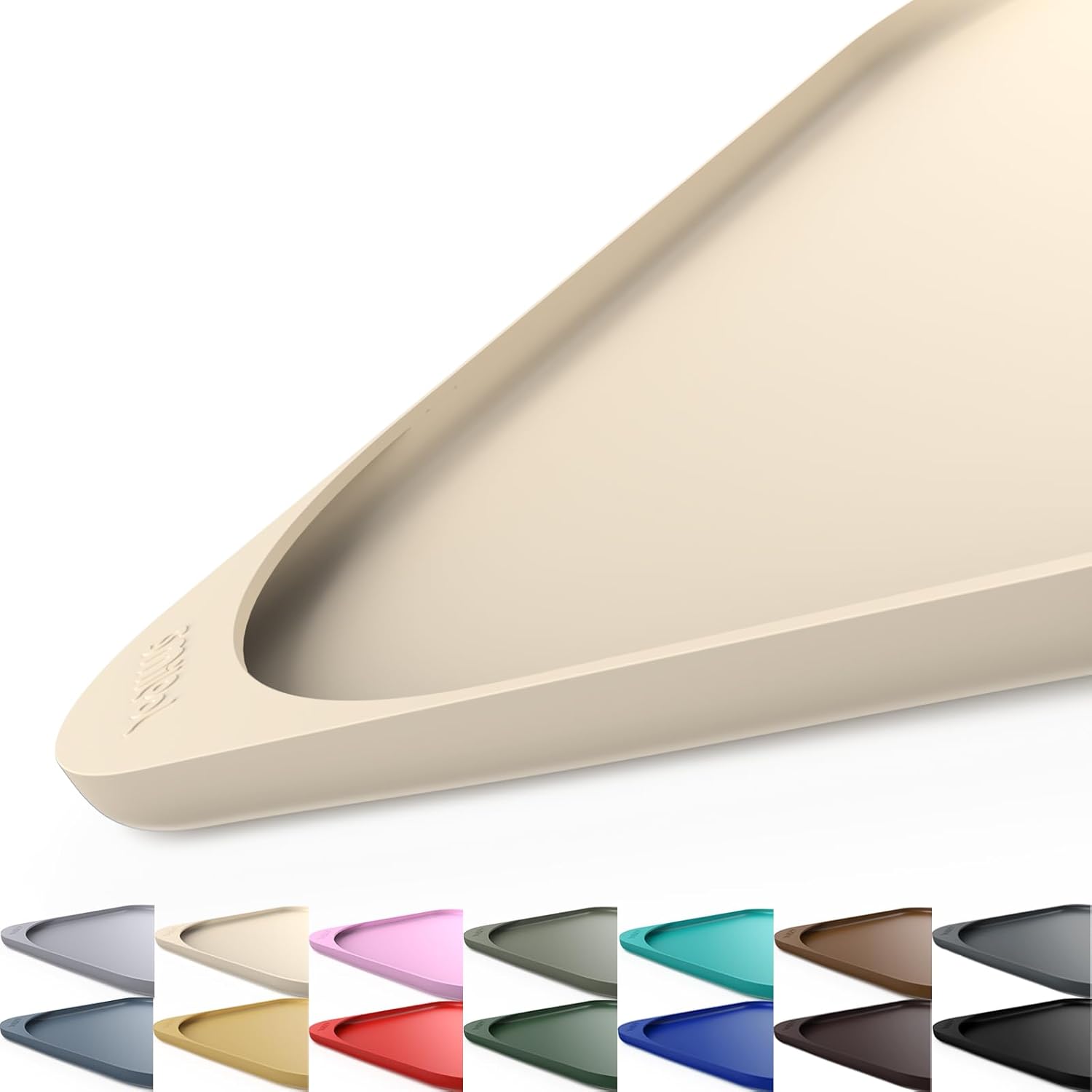 Silicone Pet Feeding Mat with Raised Edge & Residue Collection Pocket for Food and Water, Dog Bowl Mats, Cat Bowls Placemat with High Lip for Floor Waterproof, 24 x 16 x 0.8 White Sand
