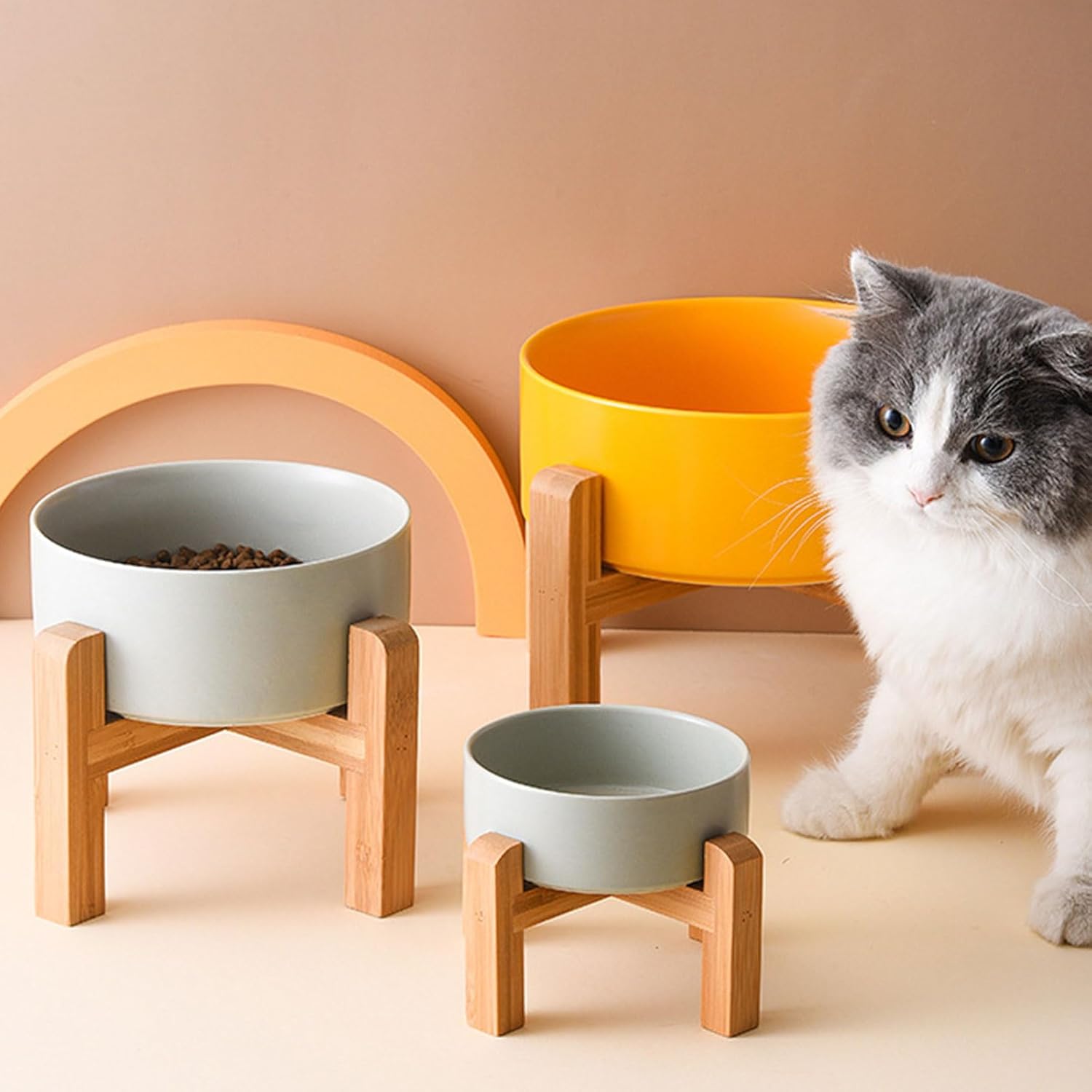 • Easy to Clean and Microwave Safe Ceramic Material - Cute ceramic dogs cats bowl with WOOD STAND design matches the home decorations. Ceramic bowl is made of Porcelain, this size cat dog food water bowls are free of lead and cadmium. High temperature ceramic, non-toxic harmless, no smell,durable.Clean sanitation, be helpful for pet health. conveniently dishwasher Microwave safe so this ceramic food bowl can be easily cleaned. No Fuss.