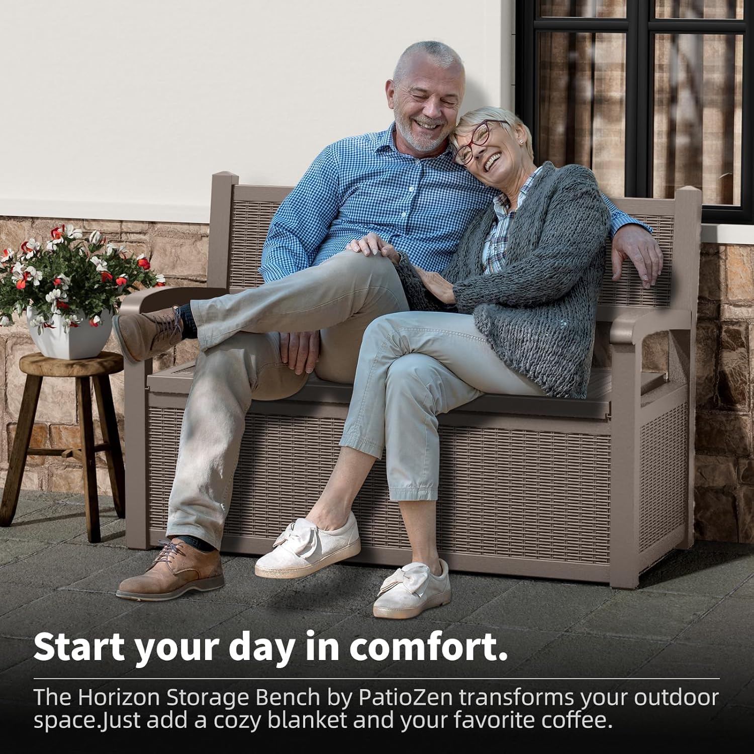 • WATERPROOF AND FADE PROOF : Crafted from high-quality, eco-friendly resin, the EasyUp storage bench is designed to be waterproof and UV-resistant, ensuring excellent durability. It withstands harsh sun and rain, maintaining its original appearance and strength in any season, making your outdoor life easier and worry-free.