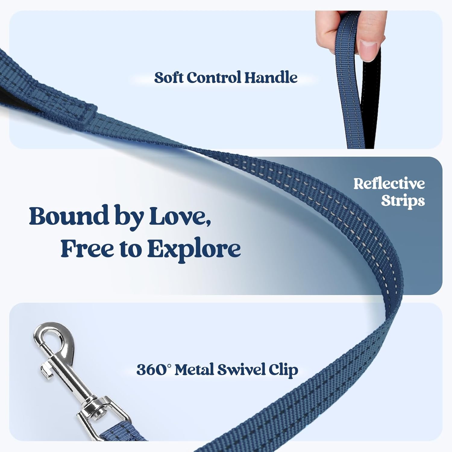 • Dog Harness with Leash Set:The color-matching harness and leash with reflective bands make it fashion and visible for pet outing. The leash is 5.15ft in length, with an anti-tangling clip and a palm-friendly handle
