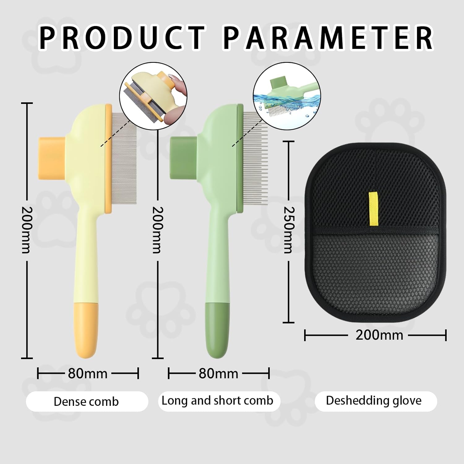 • 【Gentle Yet Effective】- Designed for sensitive skin, the soft bristles of the grooming comb and flexible pet hair removal gloves efficiently remove loose fur, tangles, and mats without causing discomfort, making it ideal for both long-haired and short-haired pets