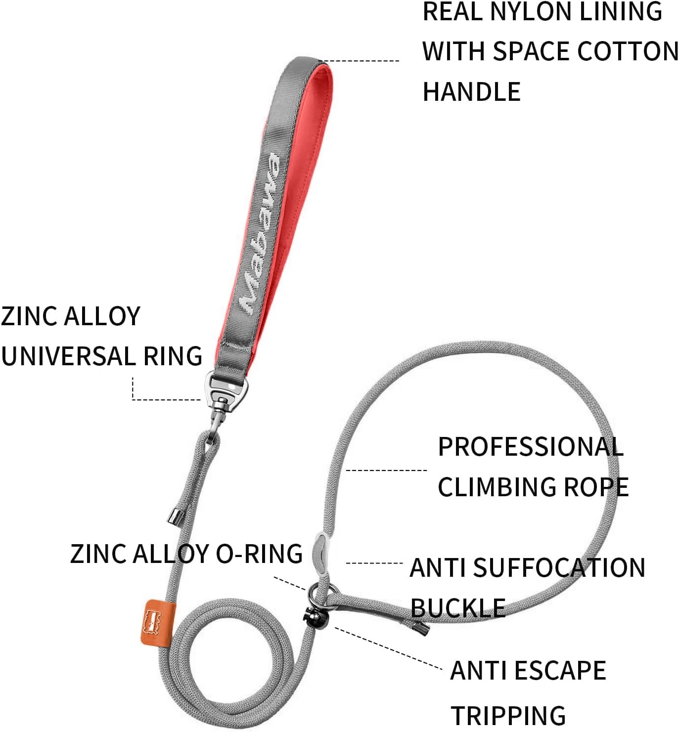 • 【Lightweight & Durable】: Slip lead dog leash is made of high-quality climbing grade nylon rope, 0.23 inches (6mm) in diameter, lightweight, durable, wear-resistant, not easy to break and twist, it can withstand strong pulling force. The dog stop pulling leash has 1 zinc alloy O-ring, which can be used to hang dog walking accessories.
