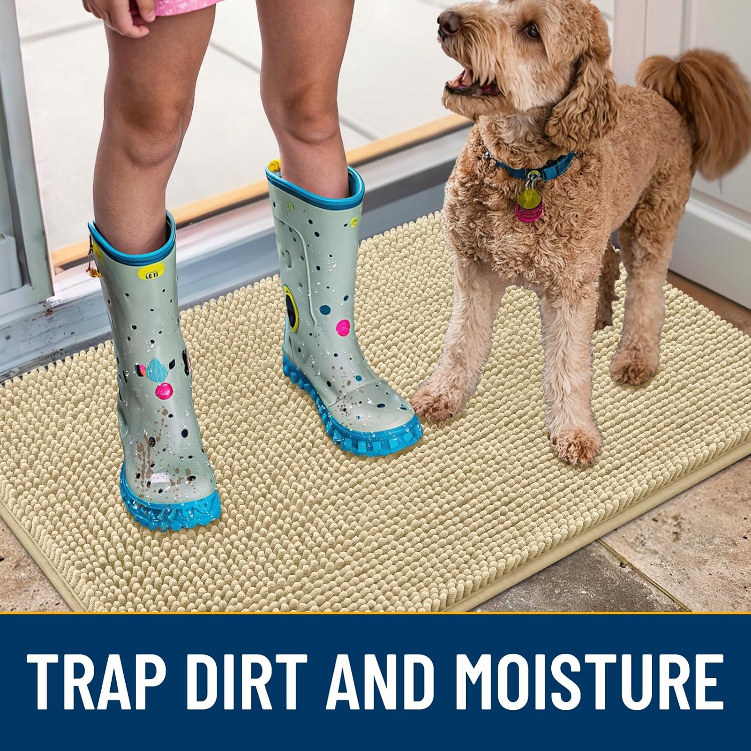 Smiry Dog Door Mat for Muddy Paws 30x20, Absorbs Moisture and Dirt Doormat, Non-Slip Washable Quick Dry Chenille Front Door Mat Indoor Entrance, Entryway Carpet for Inside Floor, Cream White