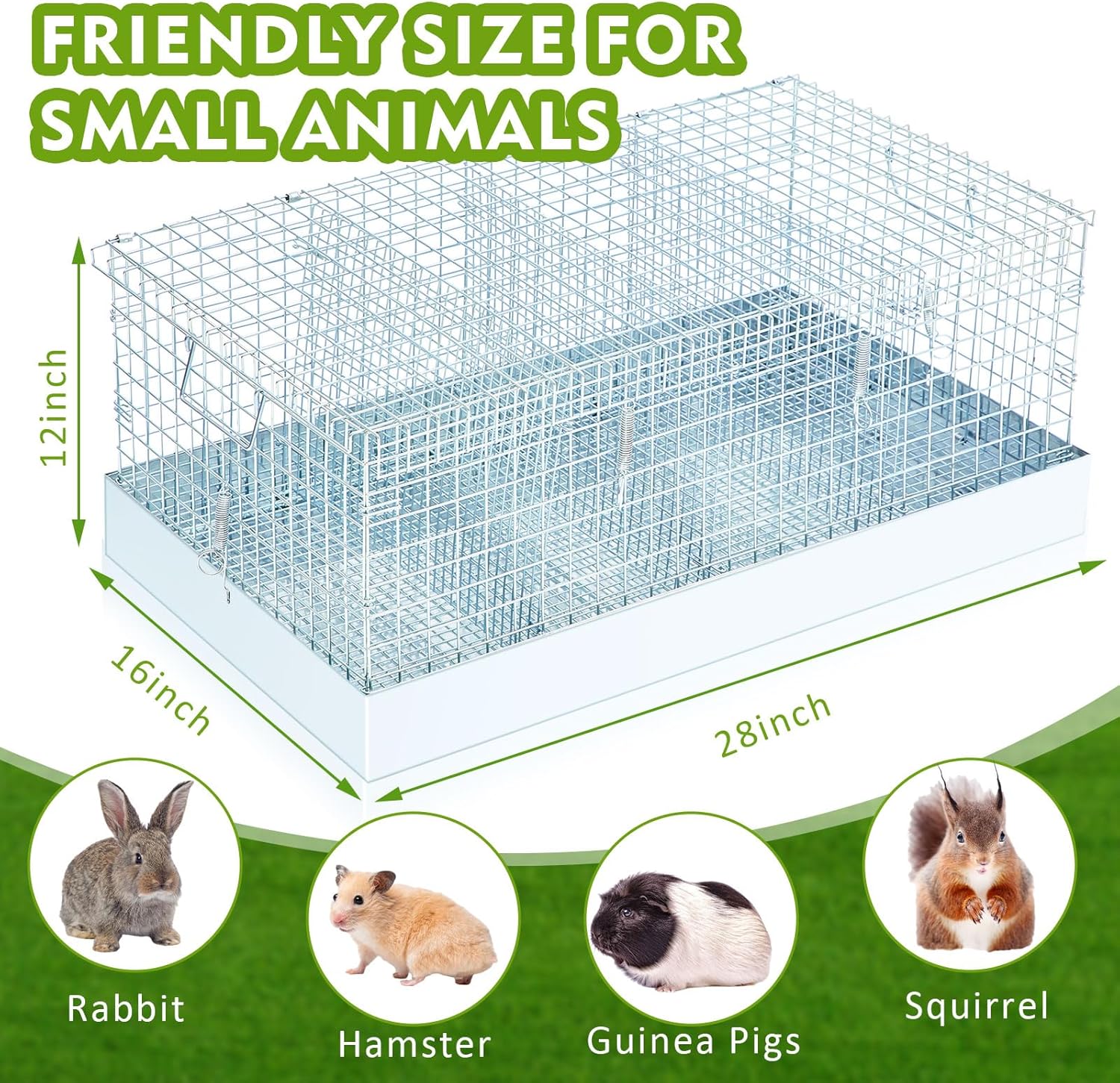 Folding Rabbit Cage, 28 x 16 x 12 in Portable Bunny Carrier with Tray and Handles for Transport, Travel or Temporary Housing, Indoor Outdoor Pet Habitat Animal Enclosure