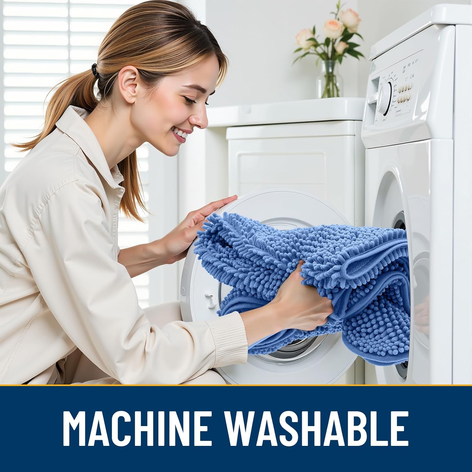 Smiry Dog Door Mat for Muddy Paws 48x30, Absorbs Moisture and Dirt Doormat, Non-Slip Washable Quick Dry Chenille Front Door Mat Indoor Entrance, Entryway Carpet for Inside Floor, Cornflower Blue