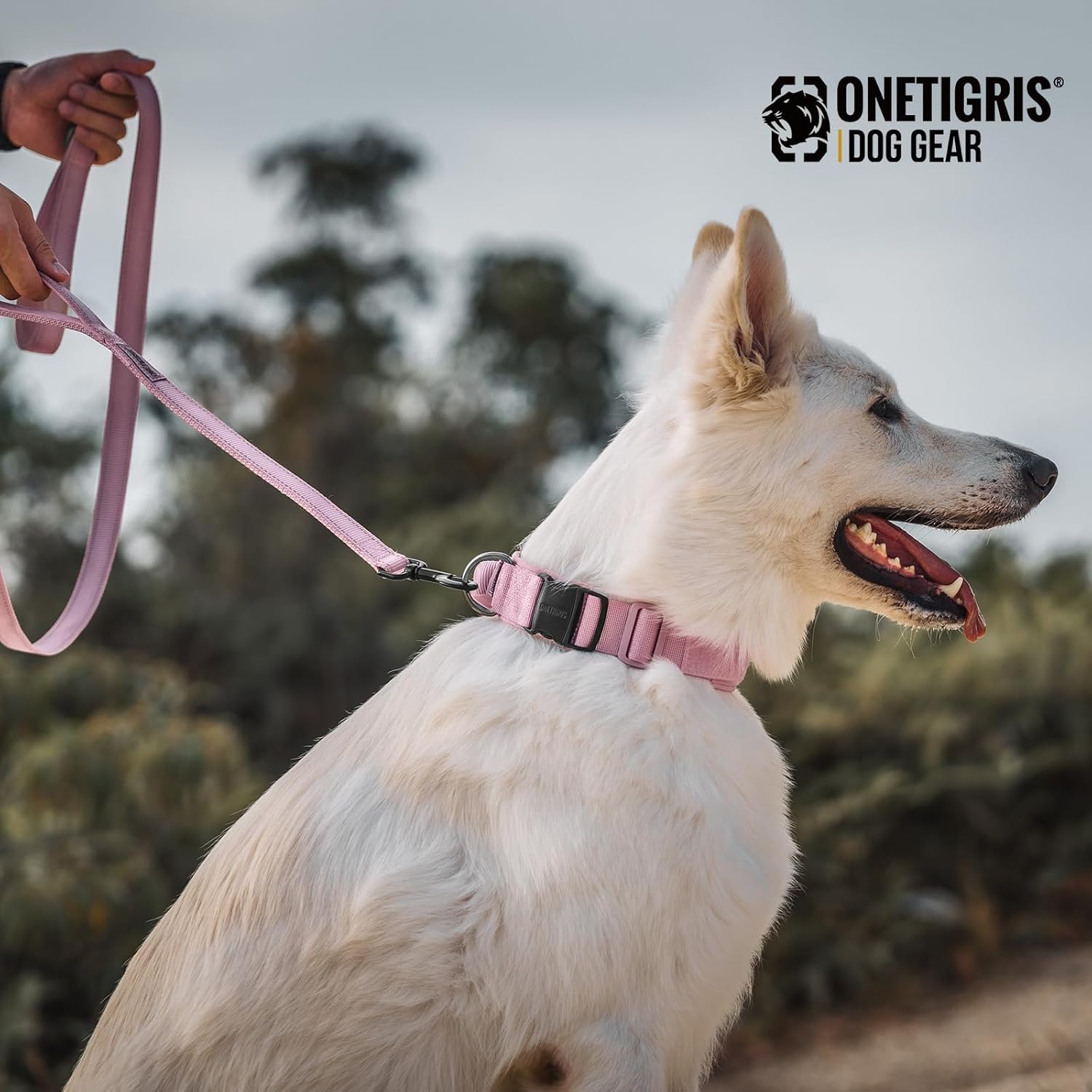 OneTigris Pink Dog Harness Leash Collar Set,Adjustable Dog Vest Harness for Walking Hiking Training(Medium)