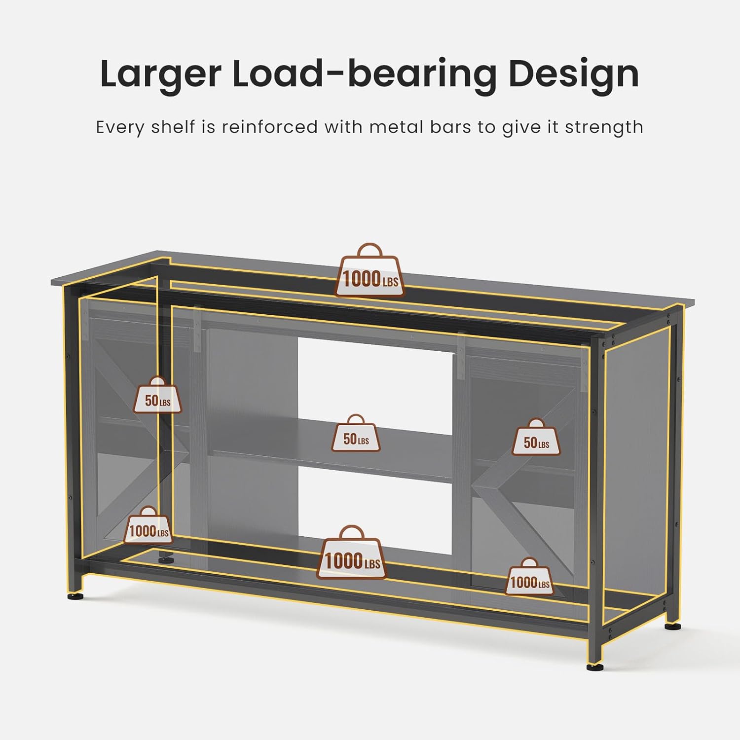 • Heavy-Duty 1000LB Capacity Construction: Featuring a reinforced 1.57" thick steel frame with particleboard/MDF panels, this stand supports up to 1000 lbs evenly distributed weight (tabletop and bottom shelf). Middle shelf holds 100 lbs for accessories.
