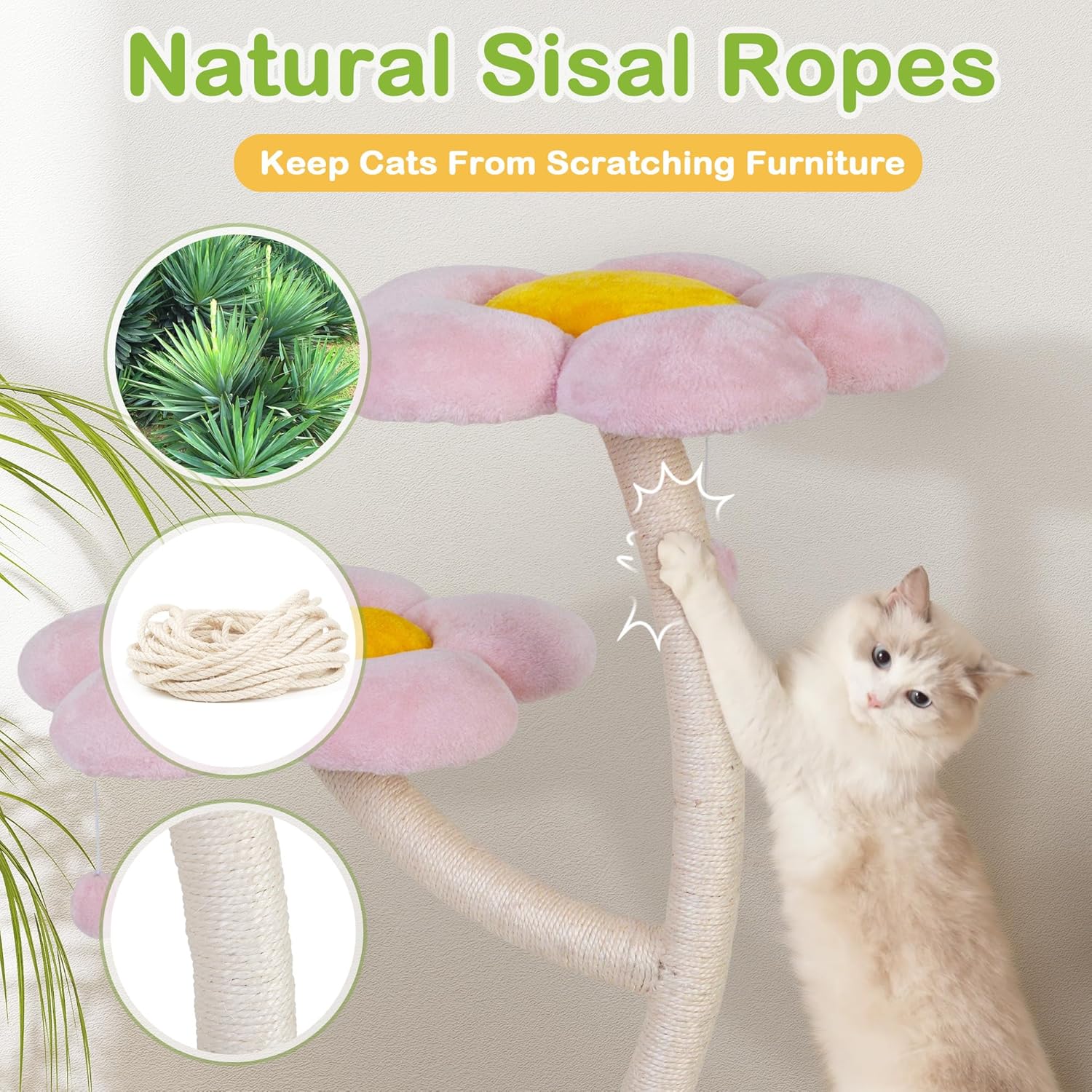 • 【57" Aesthetic Cat Tree with Charming Floral Design】Let Cats Sleep on a flower - Different from normal cat trees, our enchanting flower cat tree blending with pink, With the total height of 57" in 5-level structure, not only an eye-catching paradise that provides perfect play and rest area for your feline friends, but also fresh your living room as decoration. Soft fabric on every level giving your kitty the royal treatment with purr-worthy nap