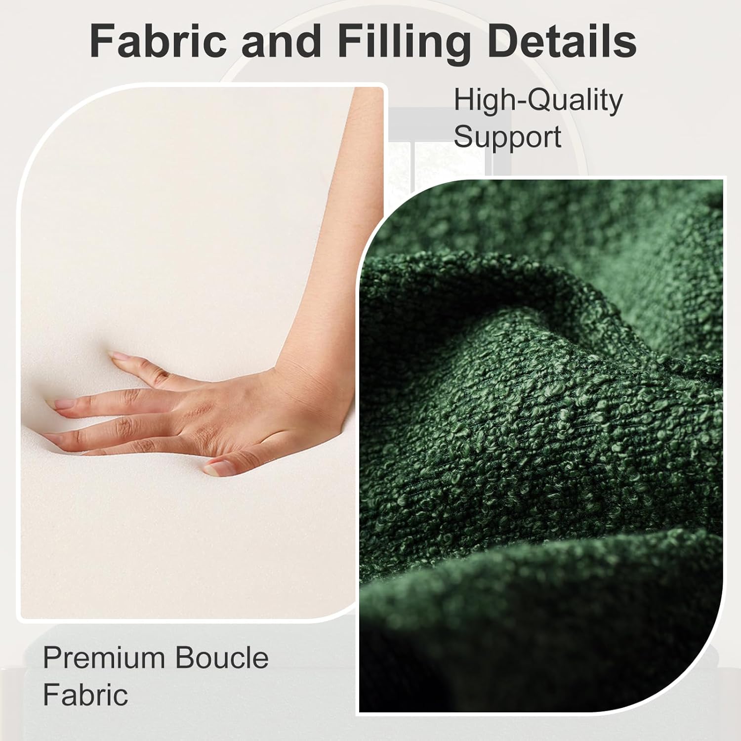 - Soft Boucle Fabric and High-Density Padding: Ottoman with storage features luxurious boucle upholstery for a soft, comfortable seat. This storage ottoman's durable fabric and high-density foam padding offer excellent support. Whether used as seating, a footrest, or an accent piece, this storage bench ensures lasting comfort. For bedroom use, it guarantees elegance and comfort. Storage ottomans with such padding are reliable and stylish additions