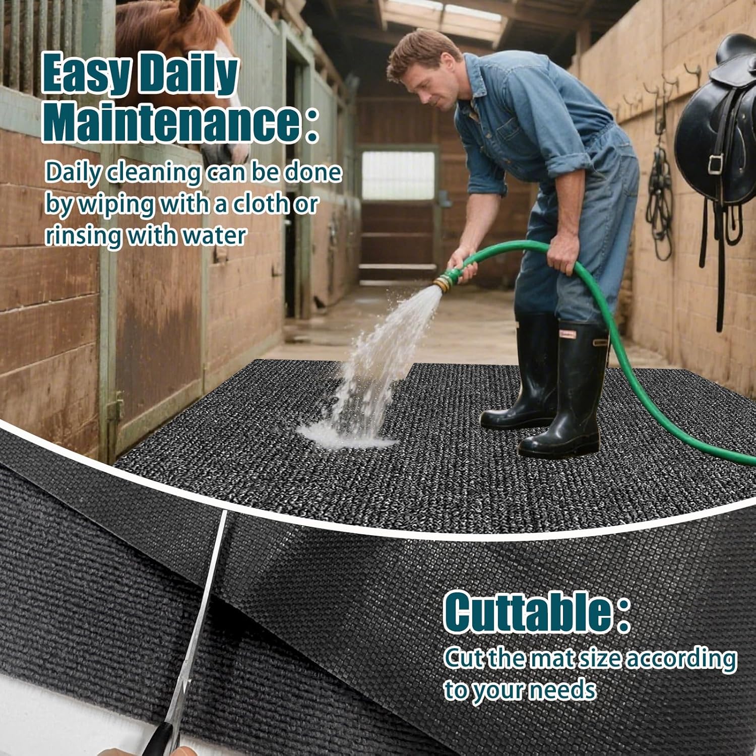 • Wide Range of Uses:Not only suitable for stables, but also for cattle sheds, sheep pens, dog kennels and other livestock facilities. Can also be used as a training mat, garage mat or work mat, slip-resistant and wear-resistant, with multiple uses